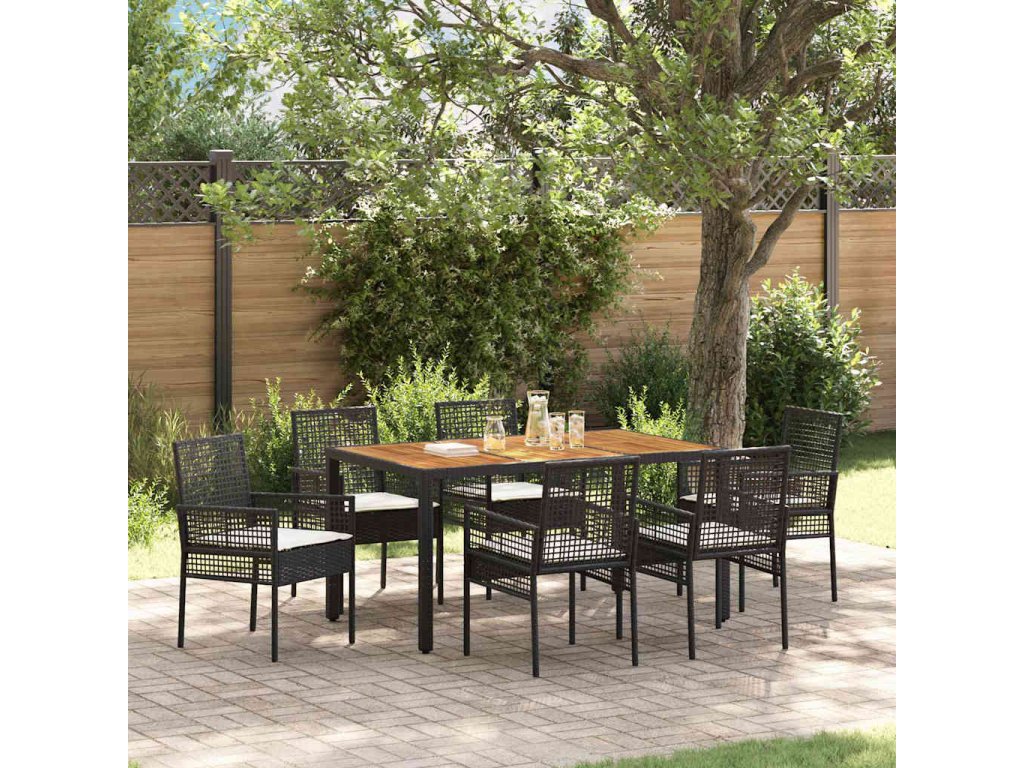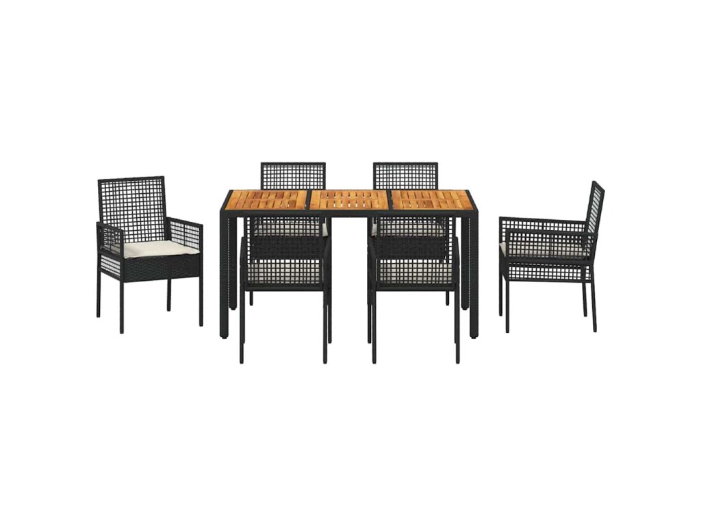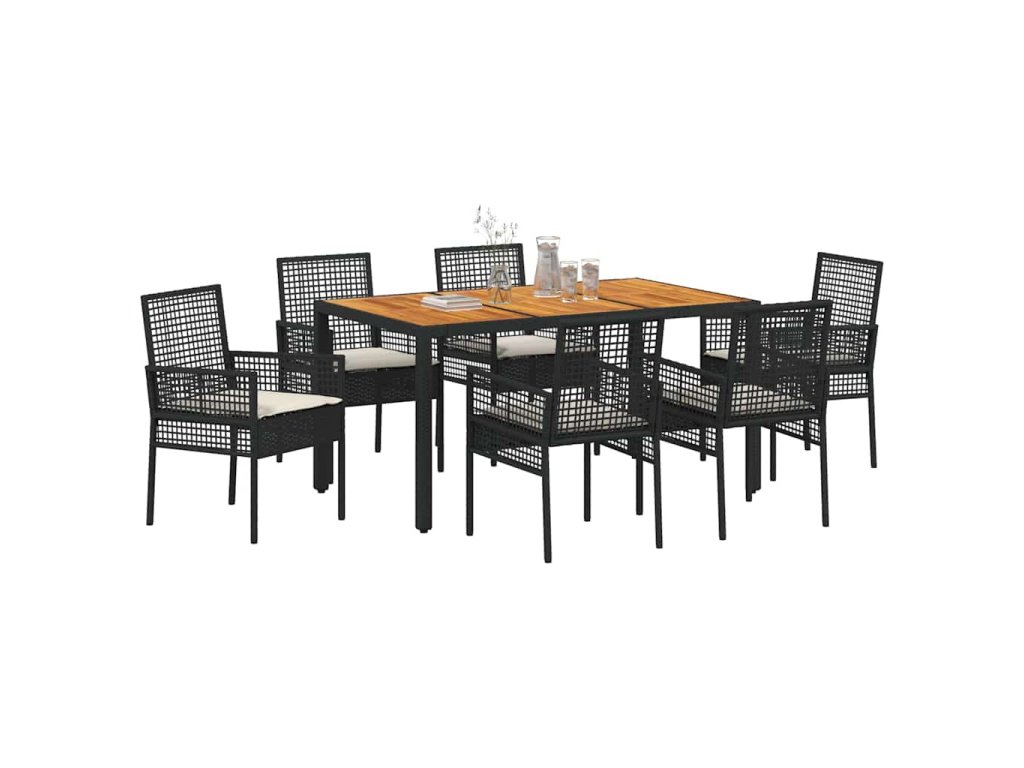 Zahradní jídelní souprava 7 pcs Černá polyratan 3334904