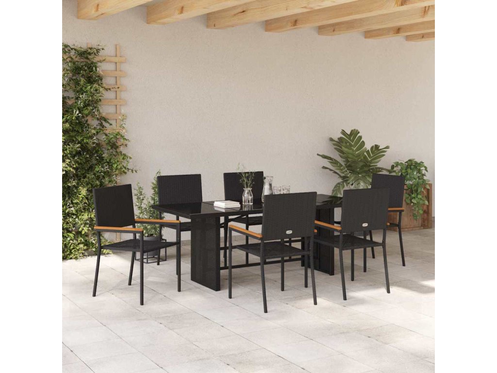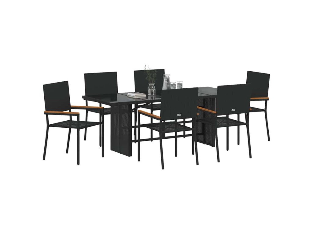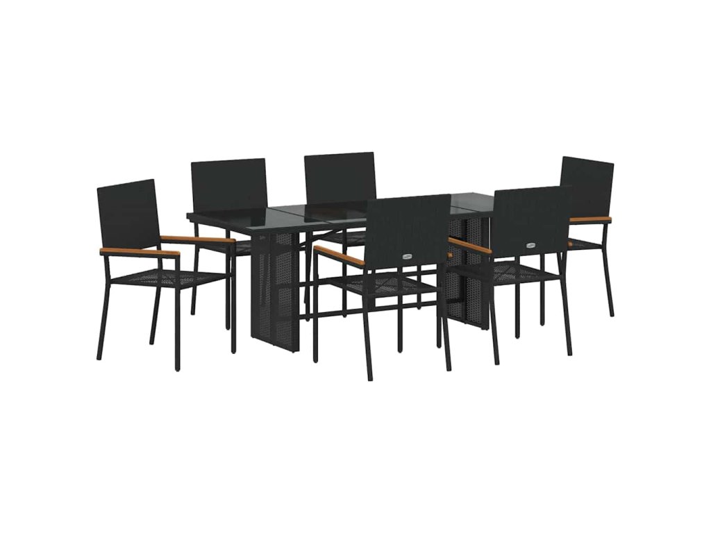 Zahradní jídelní souprava 7 pcs Černá polyratan 3365424