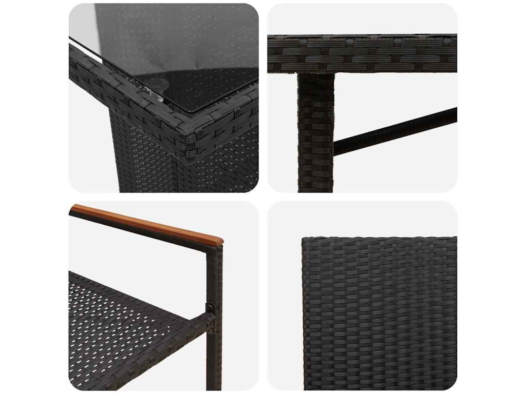 - Součásti: Každý kousek této soupravy je poctivě navržený s pevného ocelového rámu pro dobrou stabilitu, pokrytého tvrzeným sklem, které se snadno čistí a dodává celkově stylový vzhled. Špičkové akáciové dřevo opěrky dodává přírodní nádech.