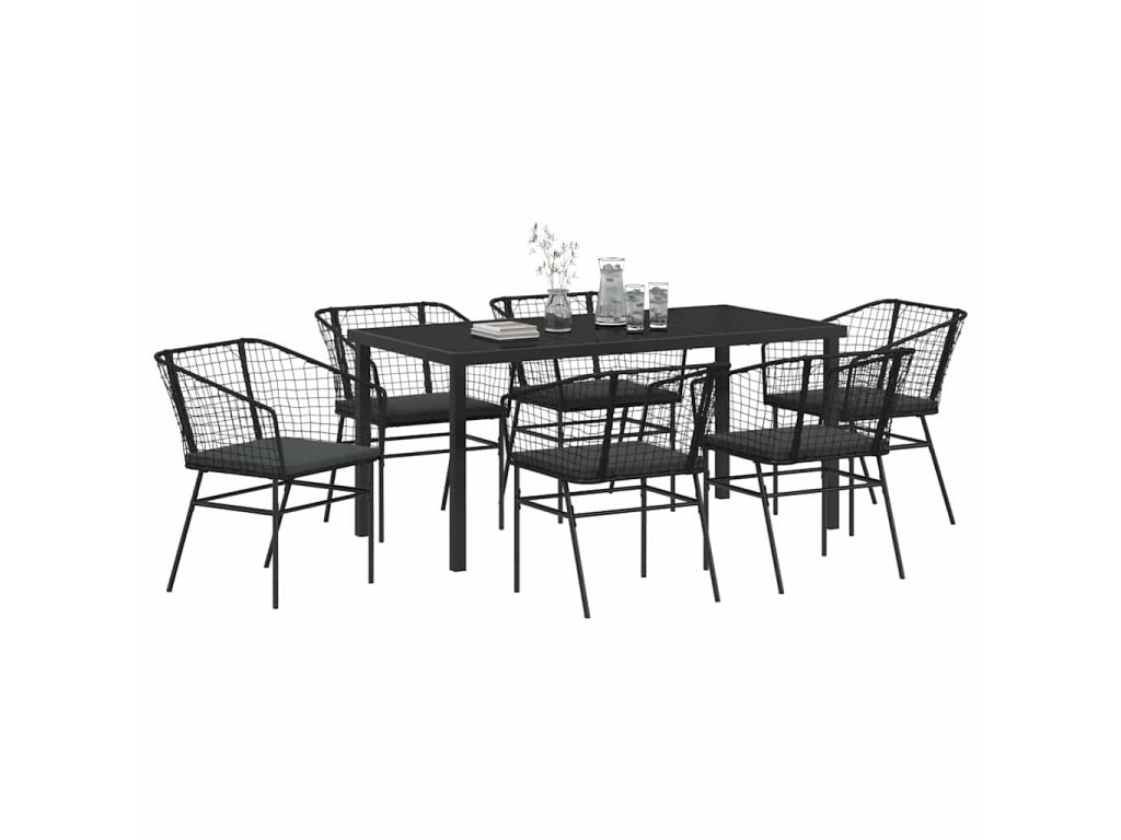 Zahradní jídelní souprava 7 pcs Černá polyratan 3380908