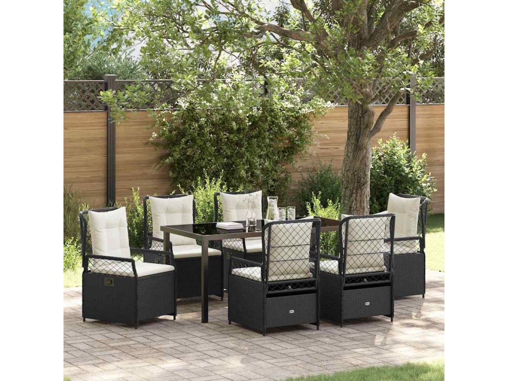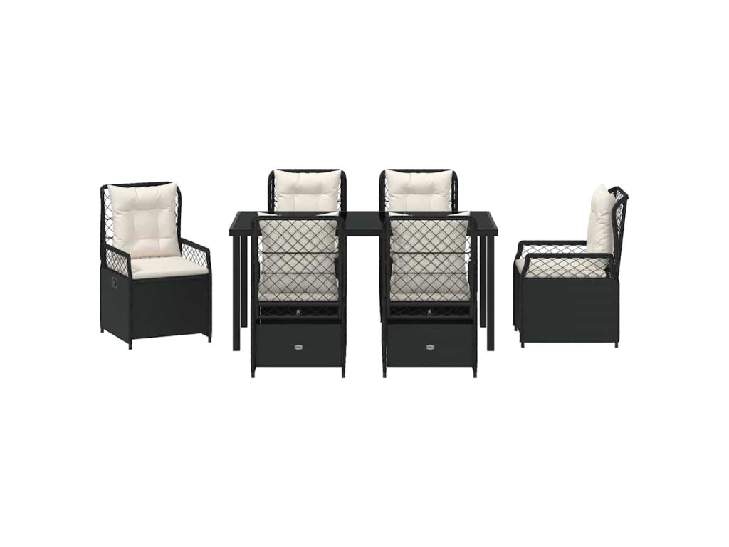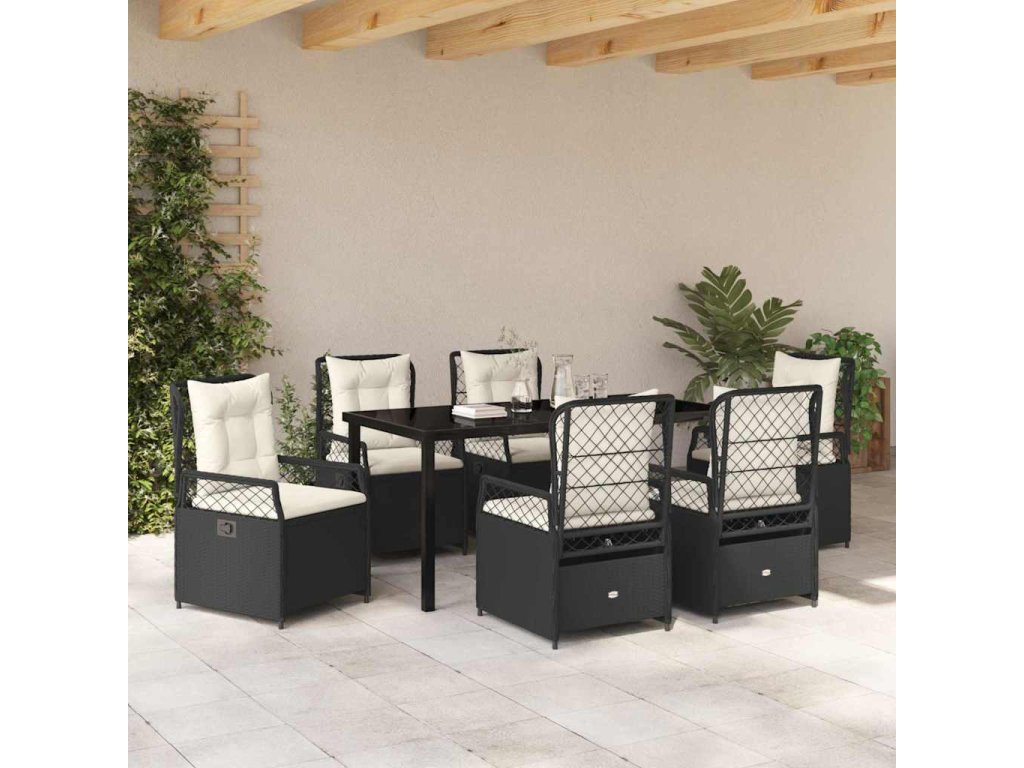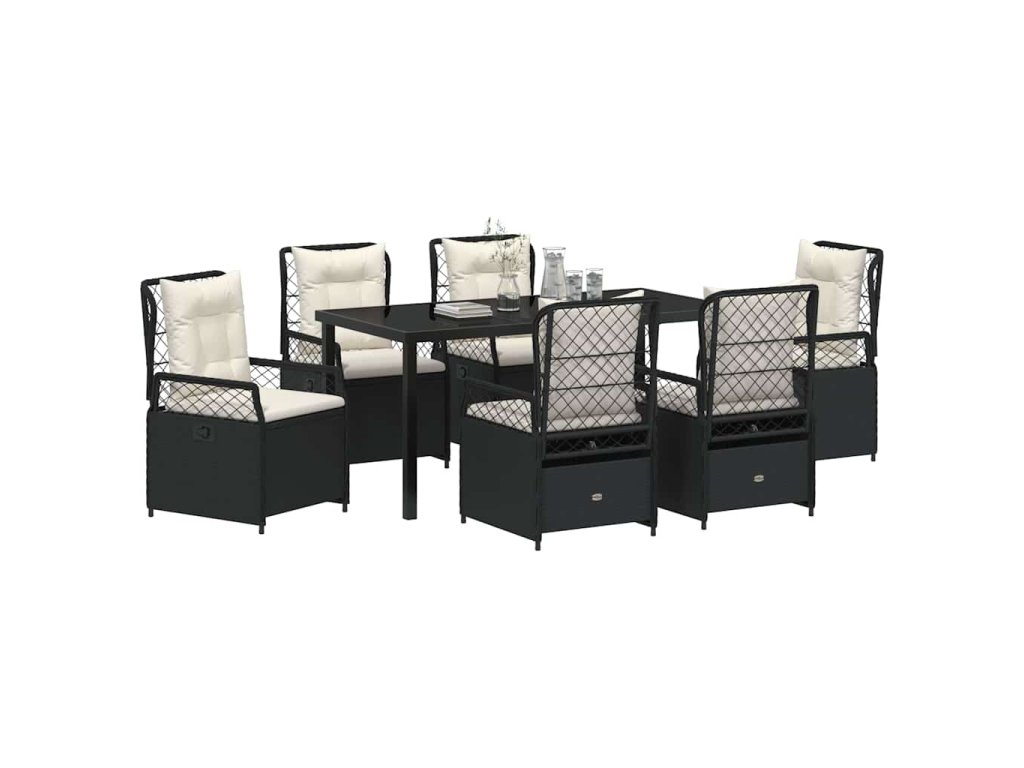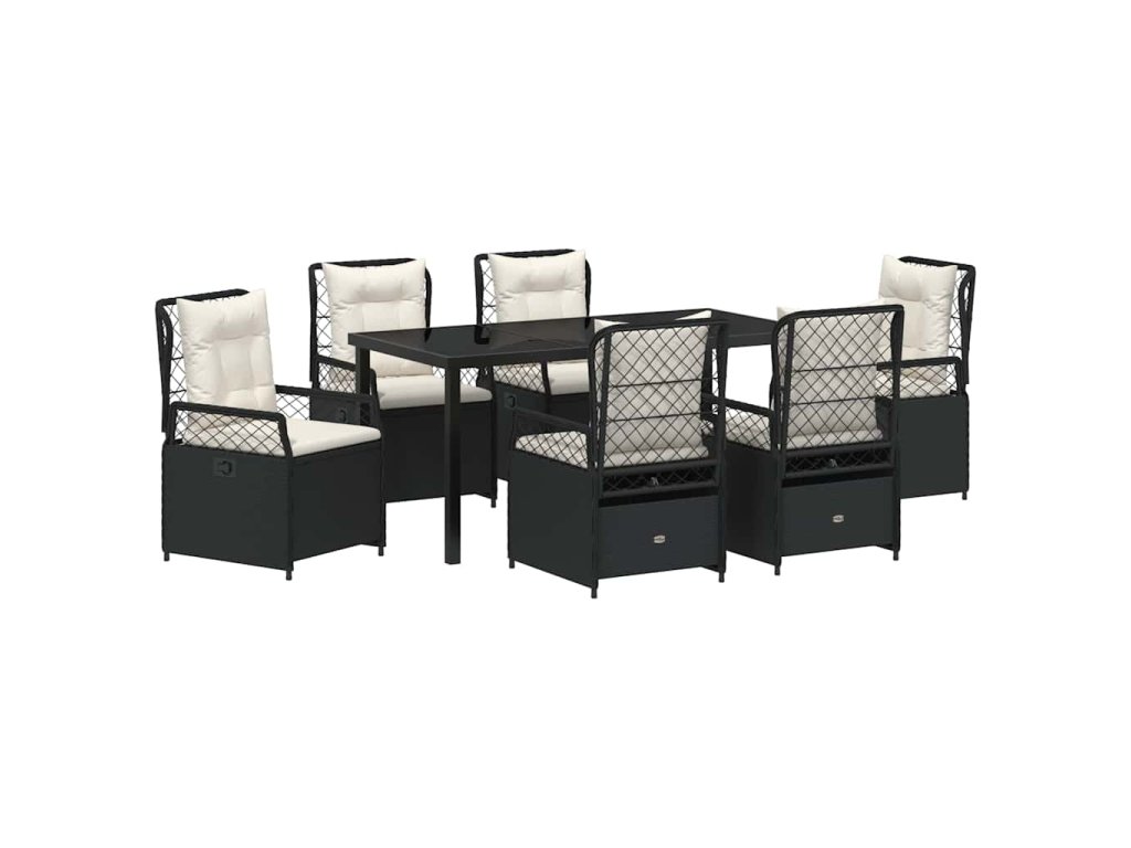 Zahradní jídelní souprava 7 pcs Černá polyratan 3380985