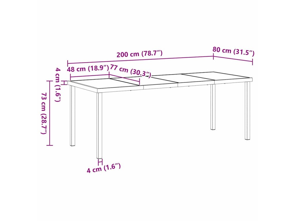 - 1 x stůl: 200 x 80 x 73 cm (D x Š x V)