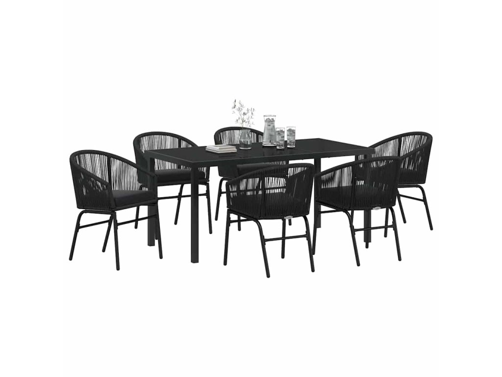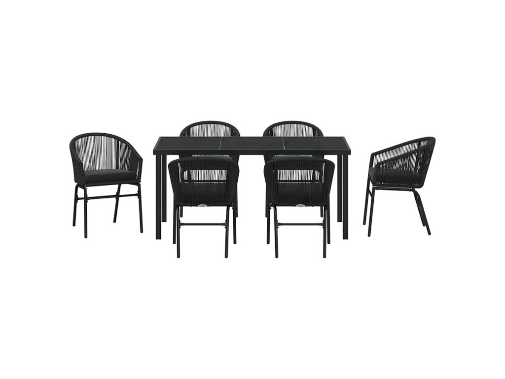 Tato moderní zahradní jídelní sada skvěle mixuje styl a funkčnost. Elegantní křivky a minimum dekorací z ní dělají ideální volbu na jarní a letní akce na vaší zahradě nebo terase. Je vytvořená pro venkovní používání a její krásné černé provedení vypadá velmi stylově, což promění jakýkoliv venkovní prostor na útulné místo pro romantické večeře nebo party s přáteli.