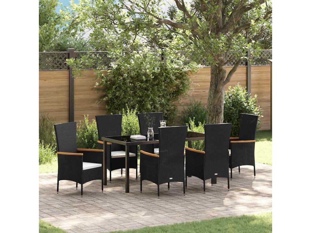 - Materiály: Sada je vyrobena z ocelového rámu s práškovým nástřikem a poly ratanu, takže je opravdu odolná vůči povětrnostním vlivům. Stůl ze tvrzeného skla dává nádech elegance a je bezpečný pro venkovní použití.