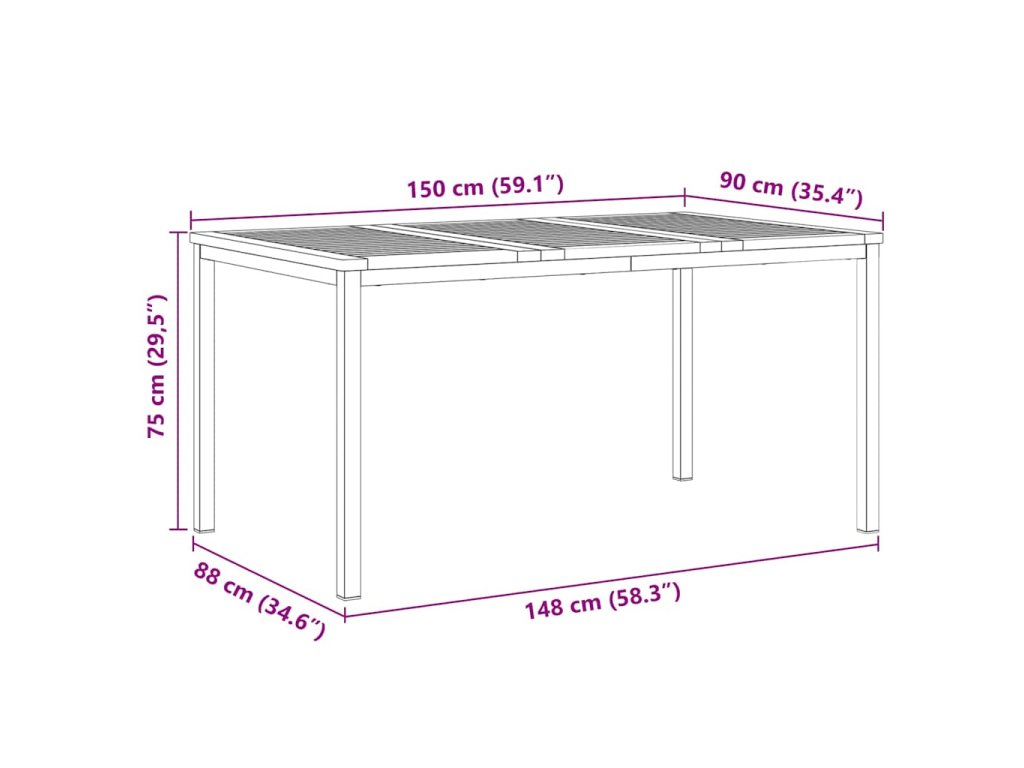 - 1 x Stůl: 150 x 90 x 75 cm (D x Š x V)