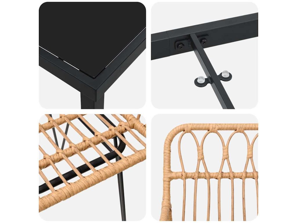 - Prémiové materiály Zahradní jídelna vyrobená z poly ratanu na sedáky a opěrky je odolná a pohodlná. Ocelový rám z práškově lakovaného kovu zajišťuje robustnost a spolehlivé použití venku. Materiály byly vybrány pro dlouhou životnost, což vám dává klid na duši při venkovním užívání.