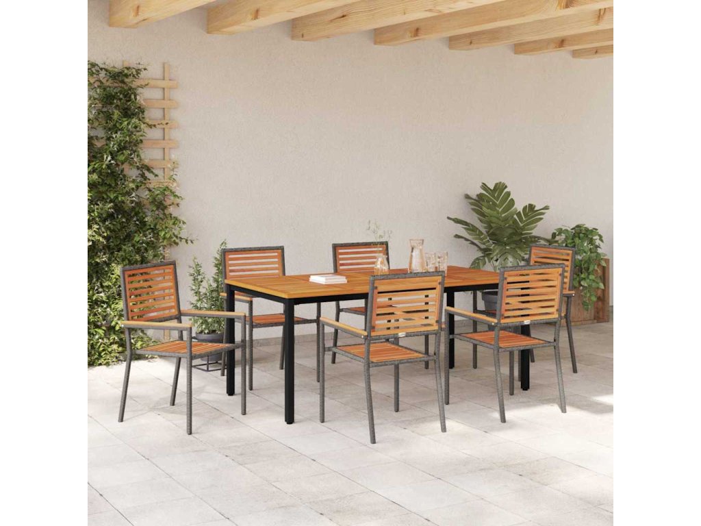 Zahradní jídelní souprava 7 pcs Šedá a hnědá polyratan 3365503