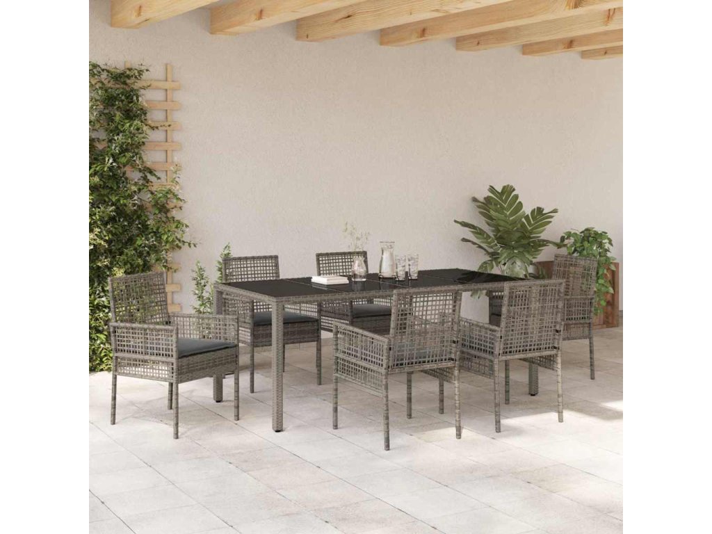 Zahradní jídelní souprava 7 pcs Šedá polyratan 3334875