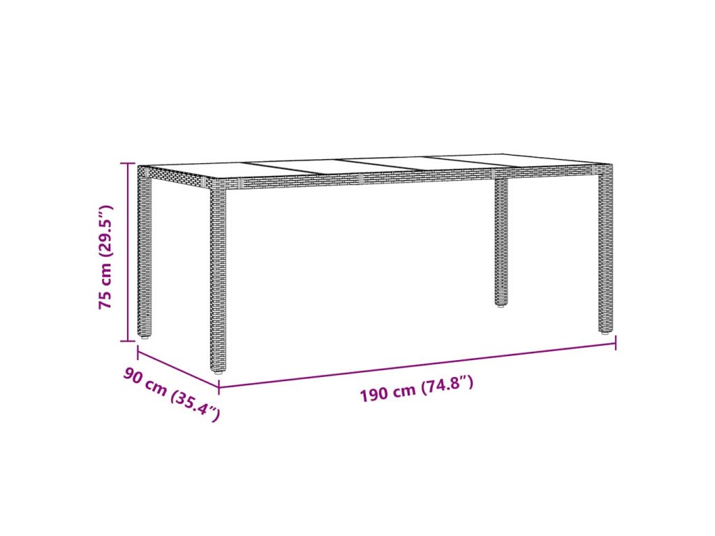 - 1 x Zahradní stůl: 190 x 90 x 75 cm (D x Š x V)