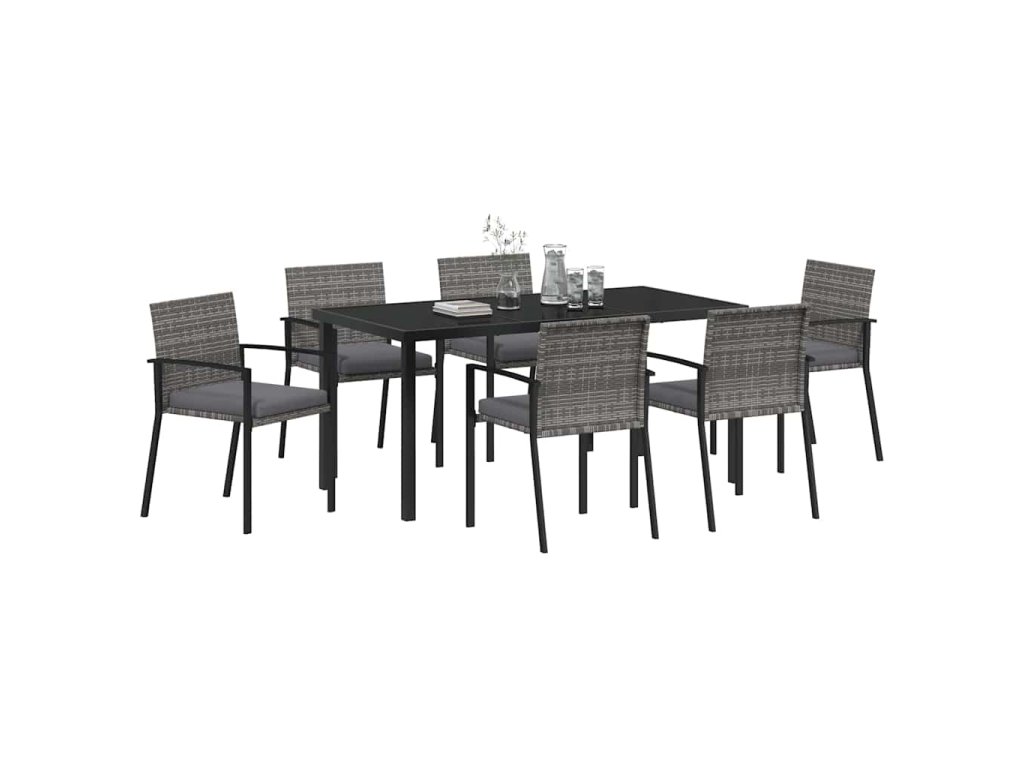 Tento moderní zahradní jídelní set je ideální pro venkovní akce, spojuje styl, funkčnost a pohodu. Výrazem jeho moderního designu jsou čisté linie a minimalistické prvky, díky kterým se hodí do jakékoli zahrady nebo terasy. Černá barva mu dodává šmrnc, takže se hodí na různou příležitosti, od neformálních brunchů po elegantní večeře.