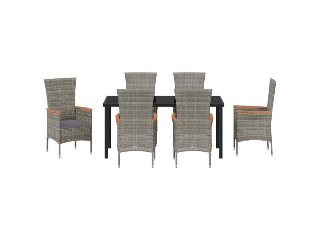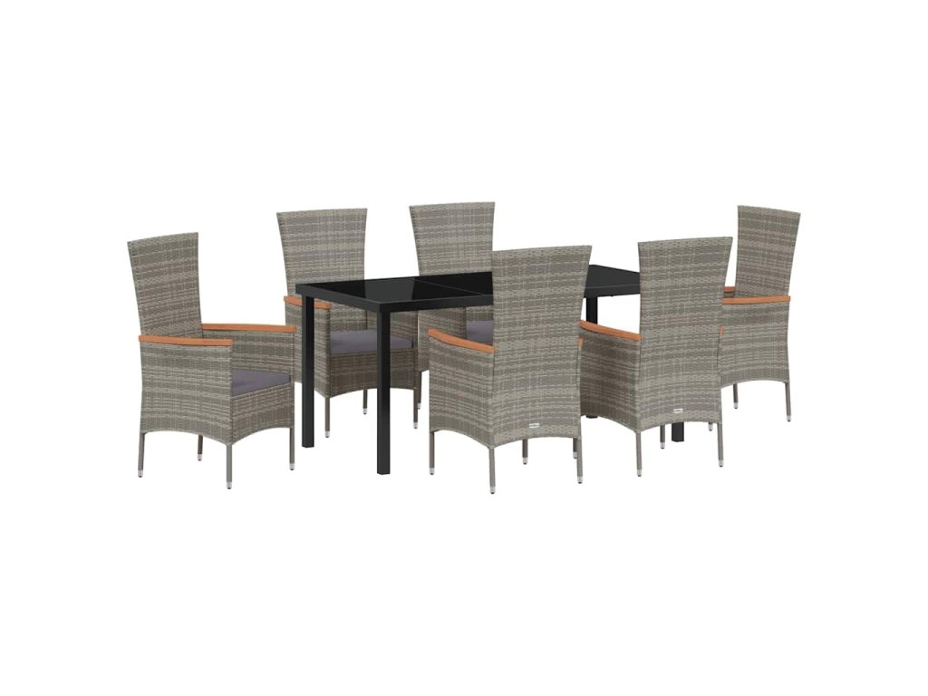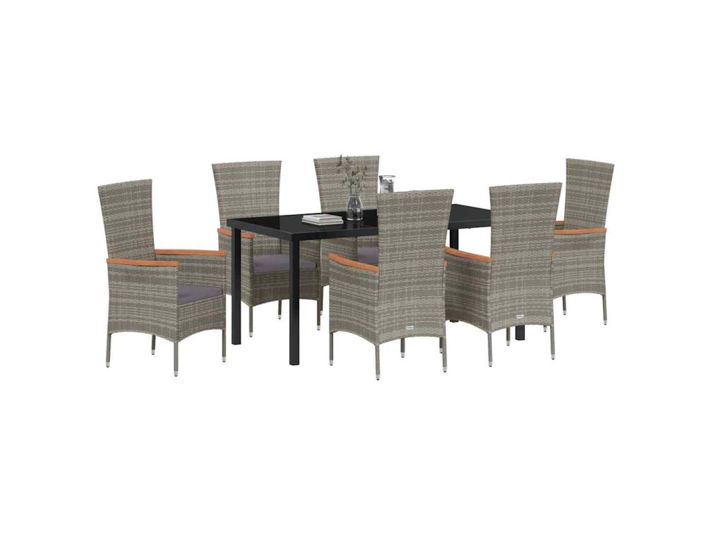 - Materiály: Sada je vyrobena z ocelového rámu s práškovým nástřikem a poly ratanu, takže je opravdu odolná vůči povětrnostním vlivům. Stůl ze tvrzeného skla dává nádech elegance a je bezpečný pro venkovní použití.