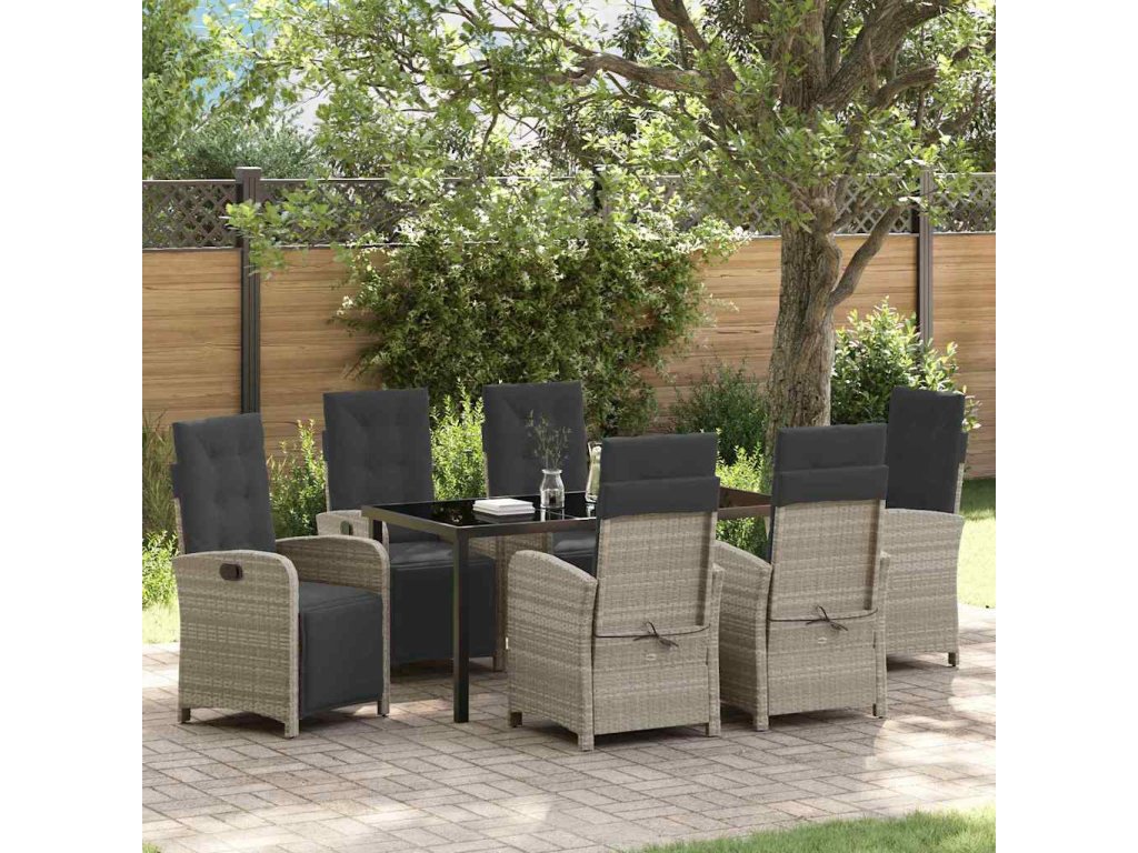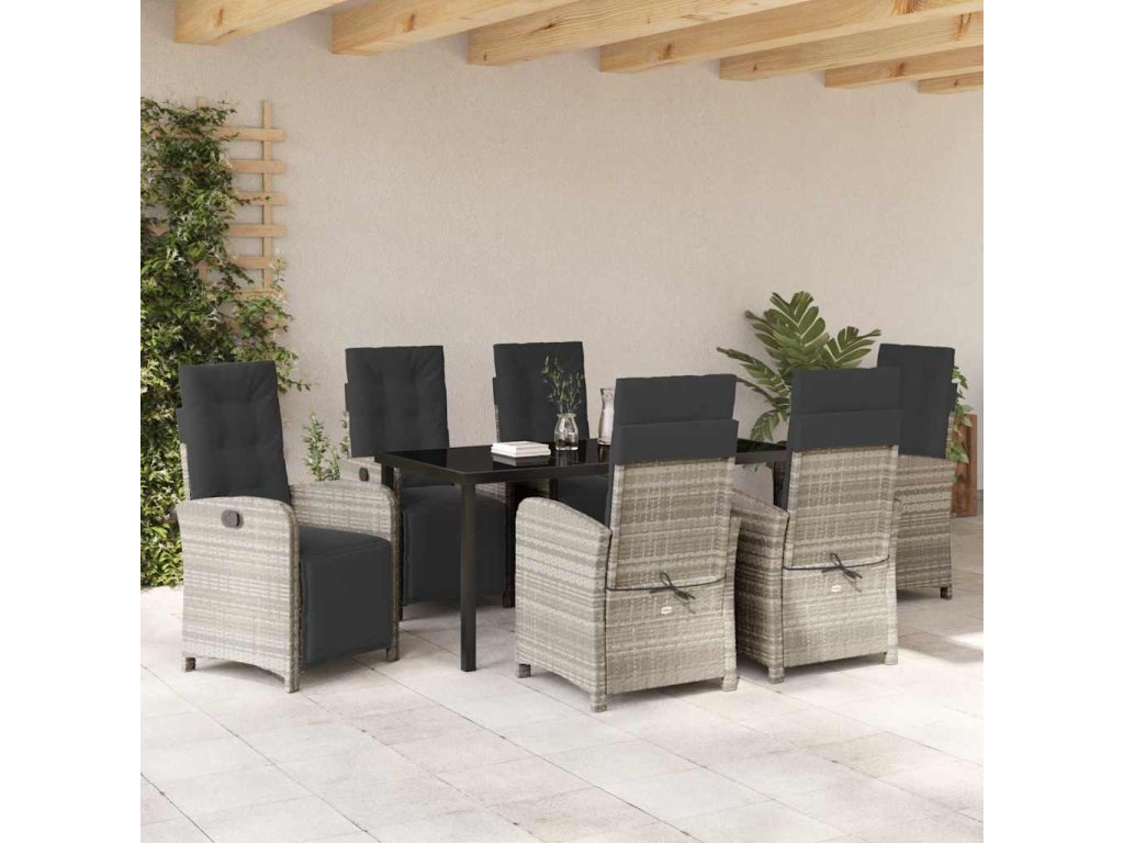 Zahradní jídelní souprava 7 pcs Světle šedá polyratan 3380348