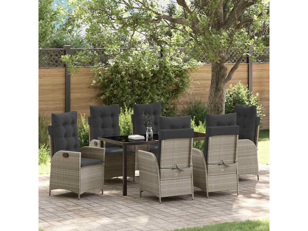 Zahradní jídelní souprava 7 pcs Světle šedá polyratan 3380523