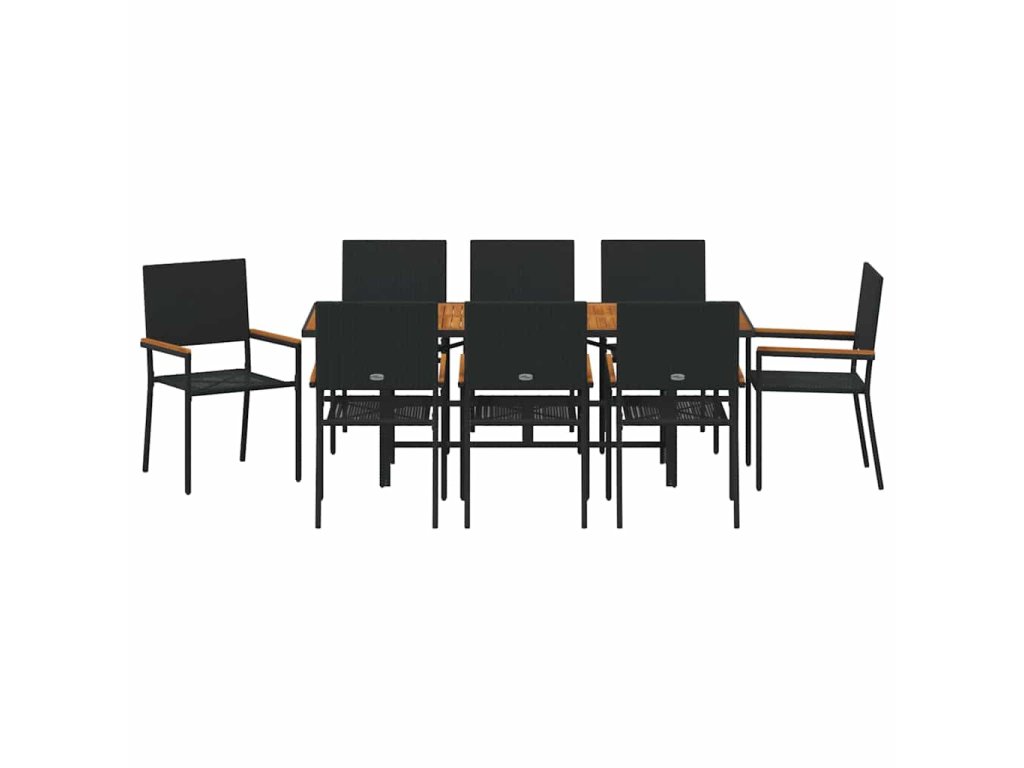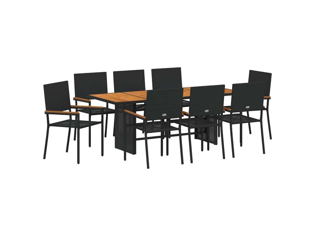 Zahradní jídelní souprava 9 pcs Černá polyratan 3365432