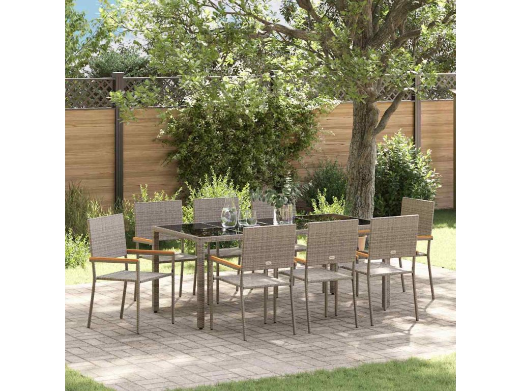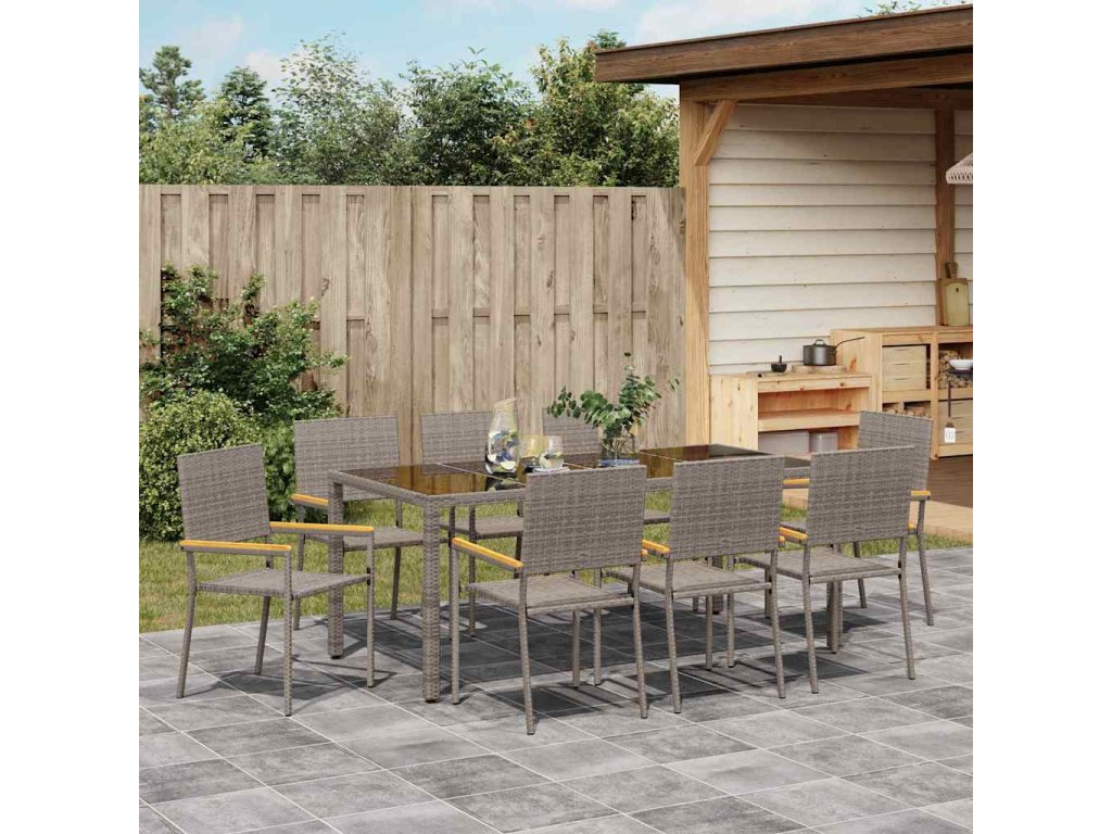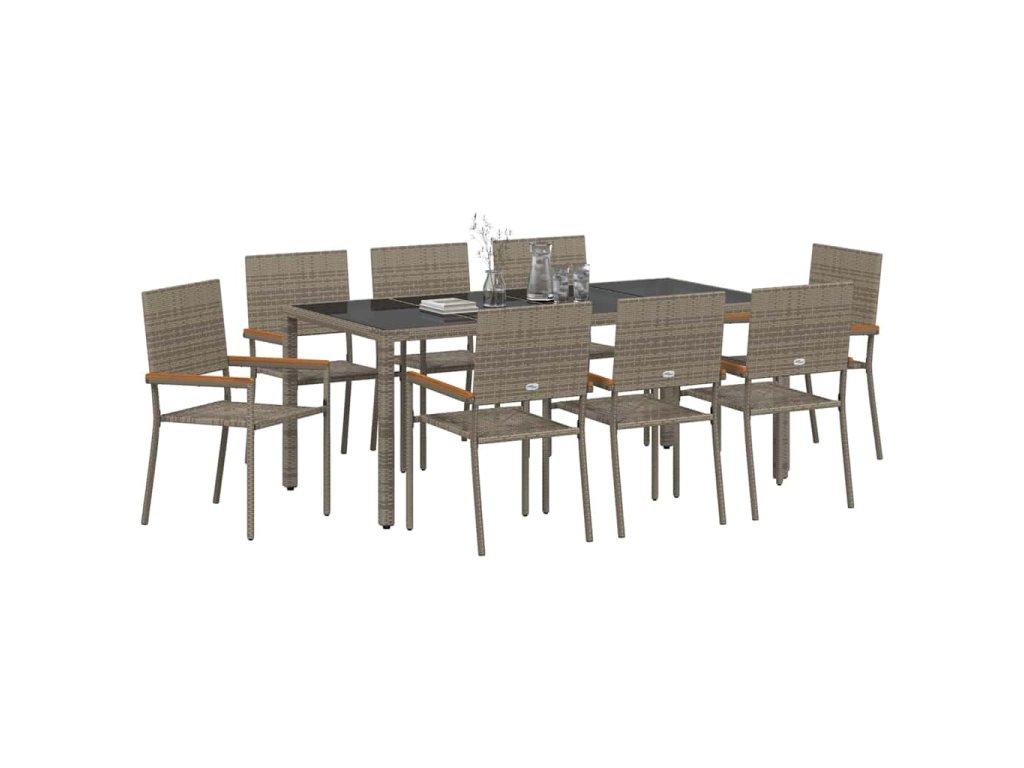 Zahradní jídelní souprava 9 pcs Šedá polyratan 3365400