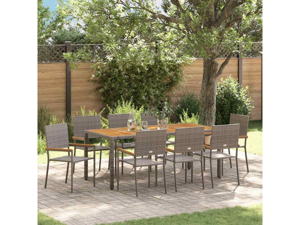 Zahradní jídelní souprava 9 pcs Šedá polyratan 3365413
