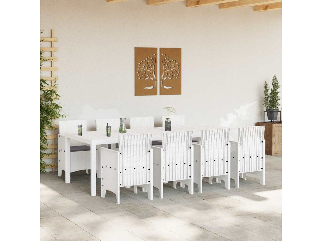 - Trvanlivost a praktické použití Navržen pro venkovní použití, moderní zahradní jídelní set vyniká dlouhověkostí díky své poly ratanové konstrukci a odolnému rámu. Tyto materiály odolávají zubu času, nabízejí uživatelům stabilní a spolehlivý jídelní setup. Tento design zaručuje pohodlí, ať už si užíváte oběd za dne nebo se uvolňujete pod večerním nebem.