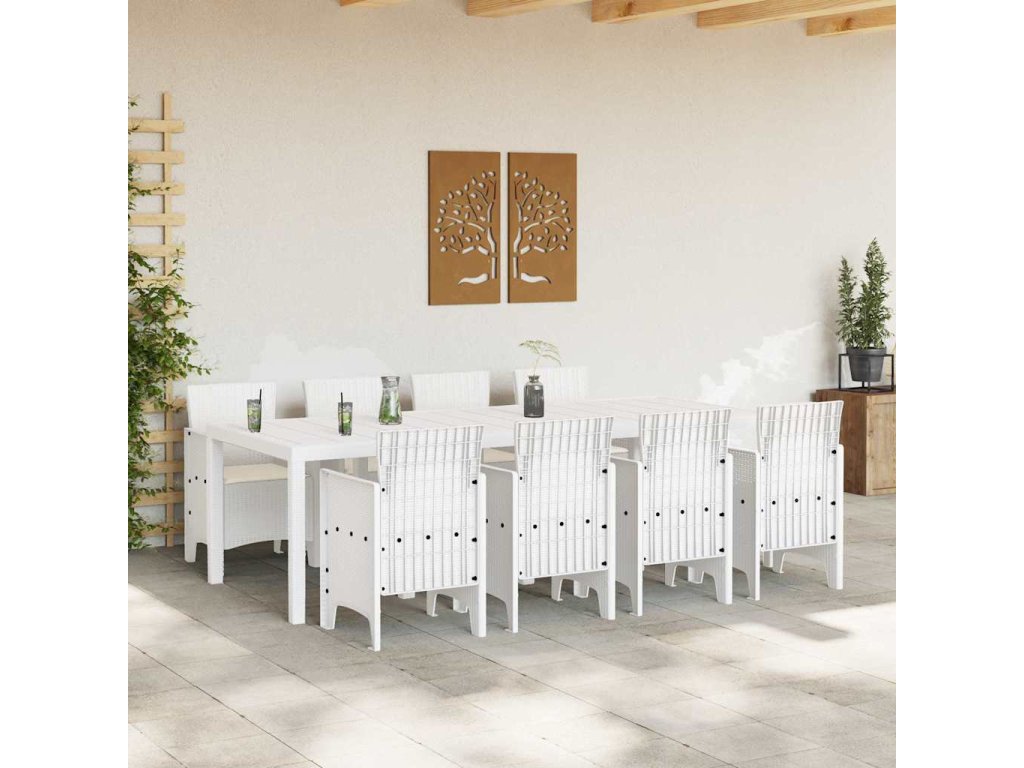 - Moderní poly ratanová konstrukce Jídelní set je vyroben z UV-odolného poly ratanu, který kombinuje eleganci s trvanlivostí. Jeho textura a matný povrch dodávají sofistikovaný, ale decentní vzhled, což ho činí vhodným pro různé venkovní prostředí, od teras po zahrady. Tato volba materiálu zajišťuje odolnost proti tvrdým slunečním paprskům, přičemž nabízí styl na dlouhou dobu.