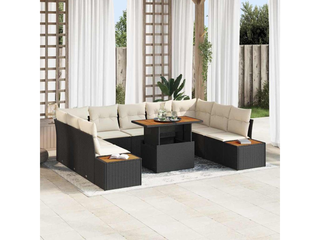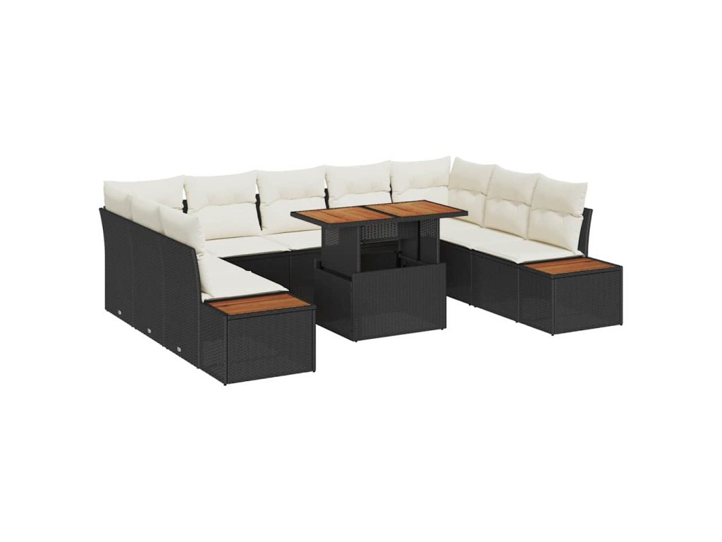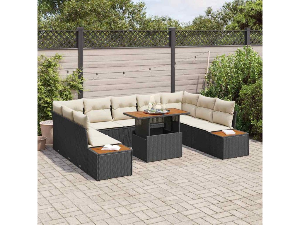 Zahradní jídelní souprava s polštářem 10 pcs Černá a béžová 3350099