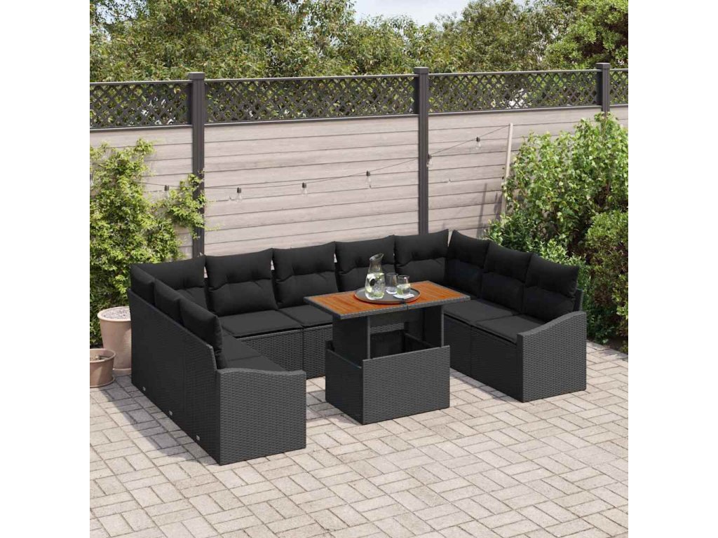 Zahradní jídelní souprava s polštářem 10 pcs Černá a hnědá 3349883