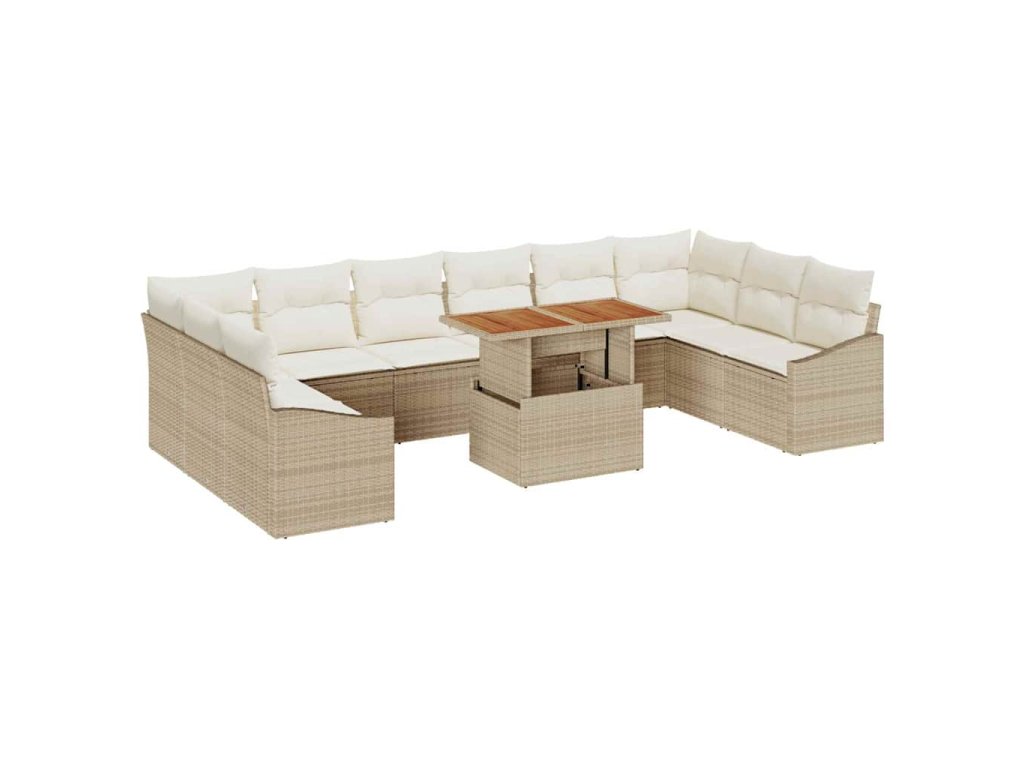 Zahradní jídelní souprava s polštářem 11 pcs Béžová a krémová 3349889