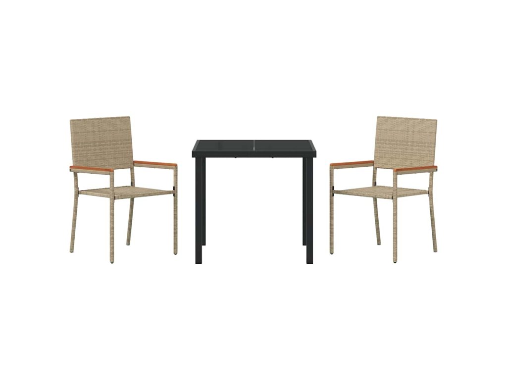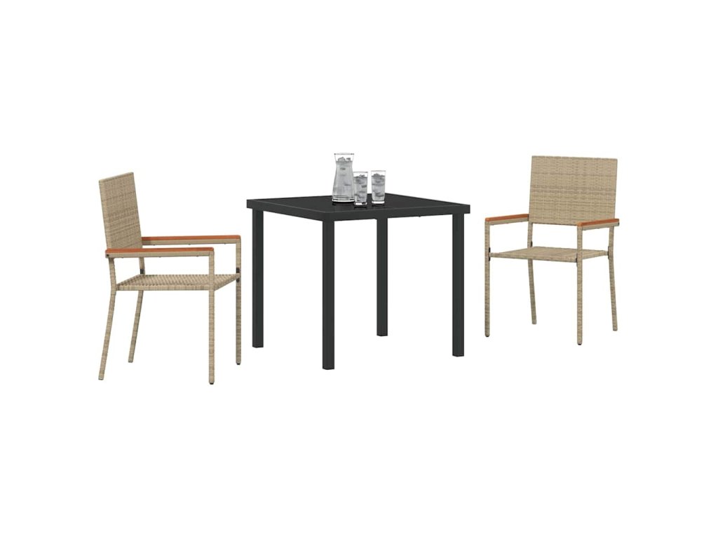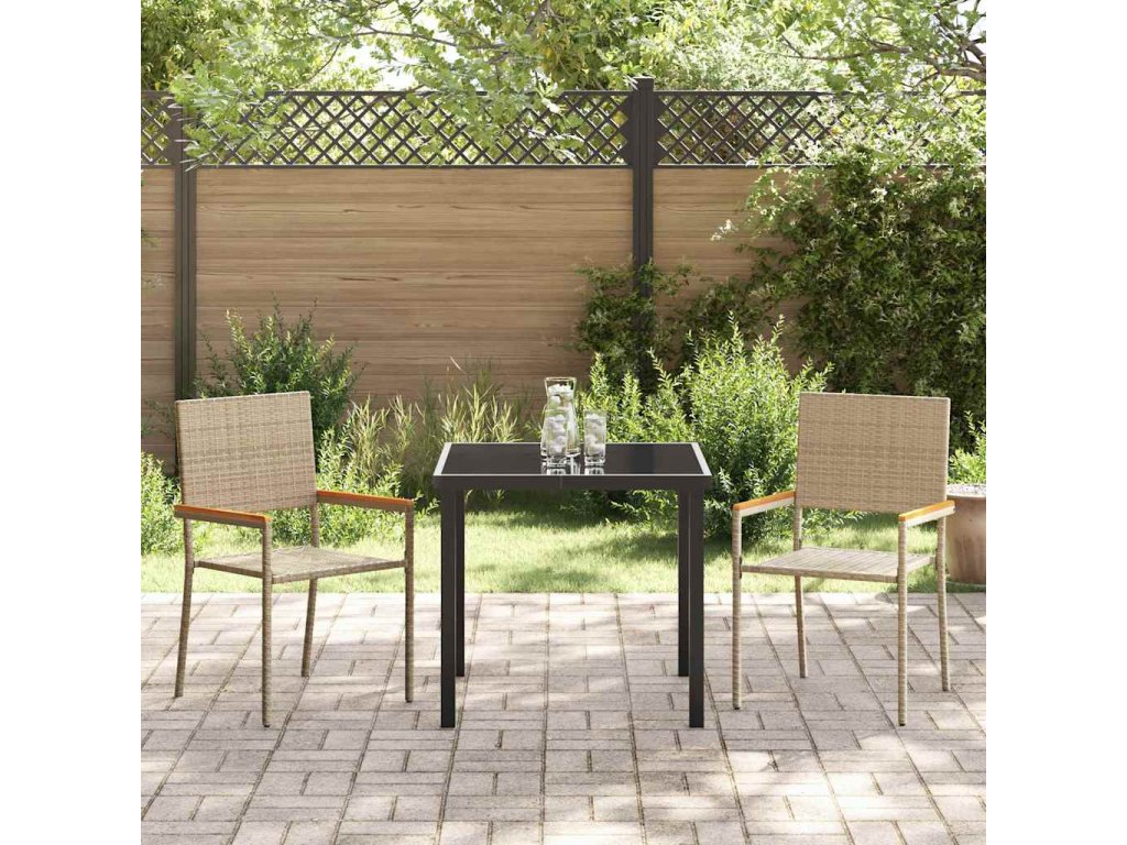 - Součásti: V setu jsou pohodlné židle, stůl se skleněnou deskou a pevné akáciové područky; všechno dohromady tvoří skvělý prostor pro venkovní jídlo.