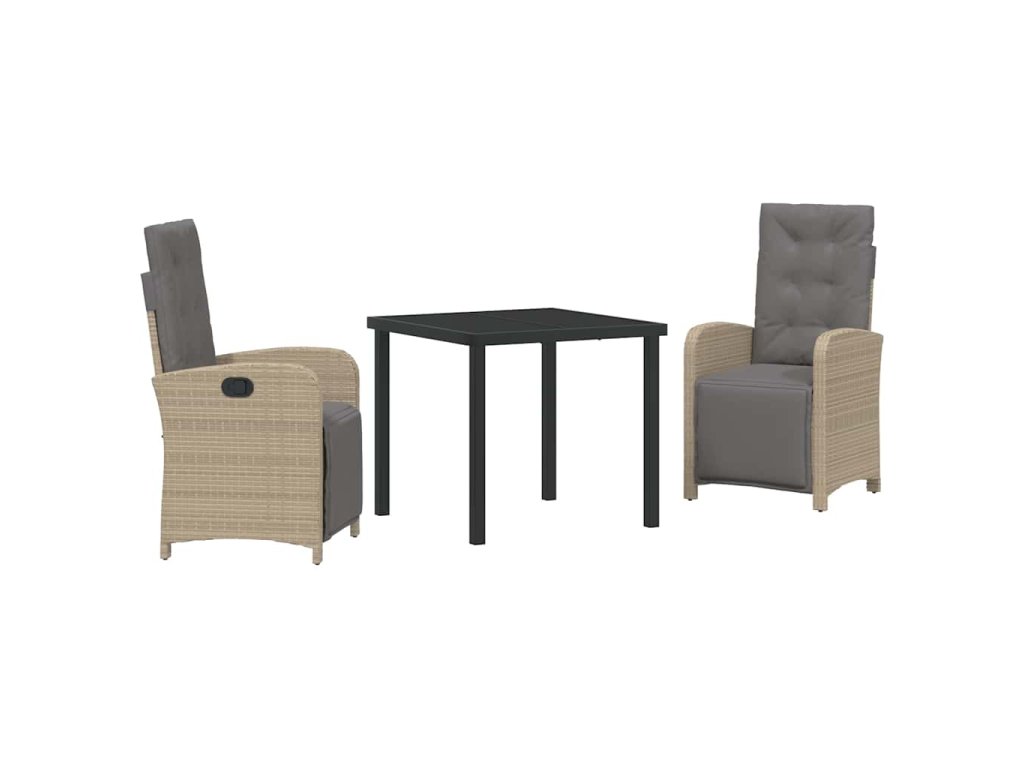 - Součásti: Set zahrnuje silný ocelový rám a poly ratanová opěradla, i ergonomické opěrky rukou na pohodlné sezení. Černý skleněný stoleček dodává šmrnc a snadno se čistí.