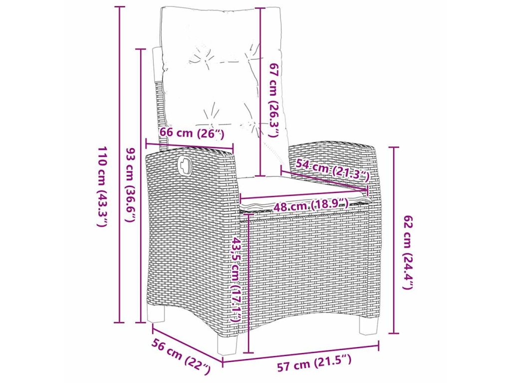 - Materiály: Set je vyrobený z poly ratanu a odolné oceli, zajišťující trvanlivost a eleganci. Poly ratan se přirozeně brání UV záření a špatnému počasí, takže je ideální na slunečné dny, a ocelový rám dodává pevnost a stabilitu pro dlouhodobé používání.