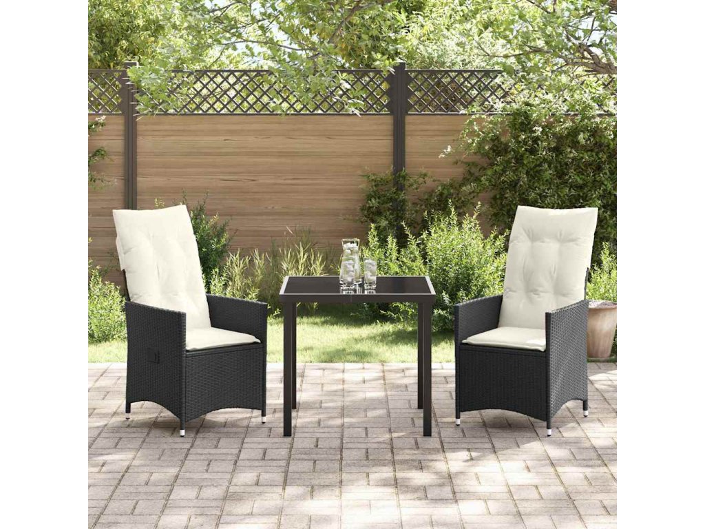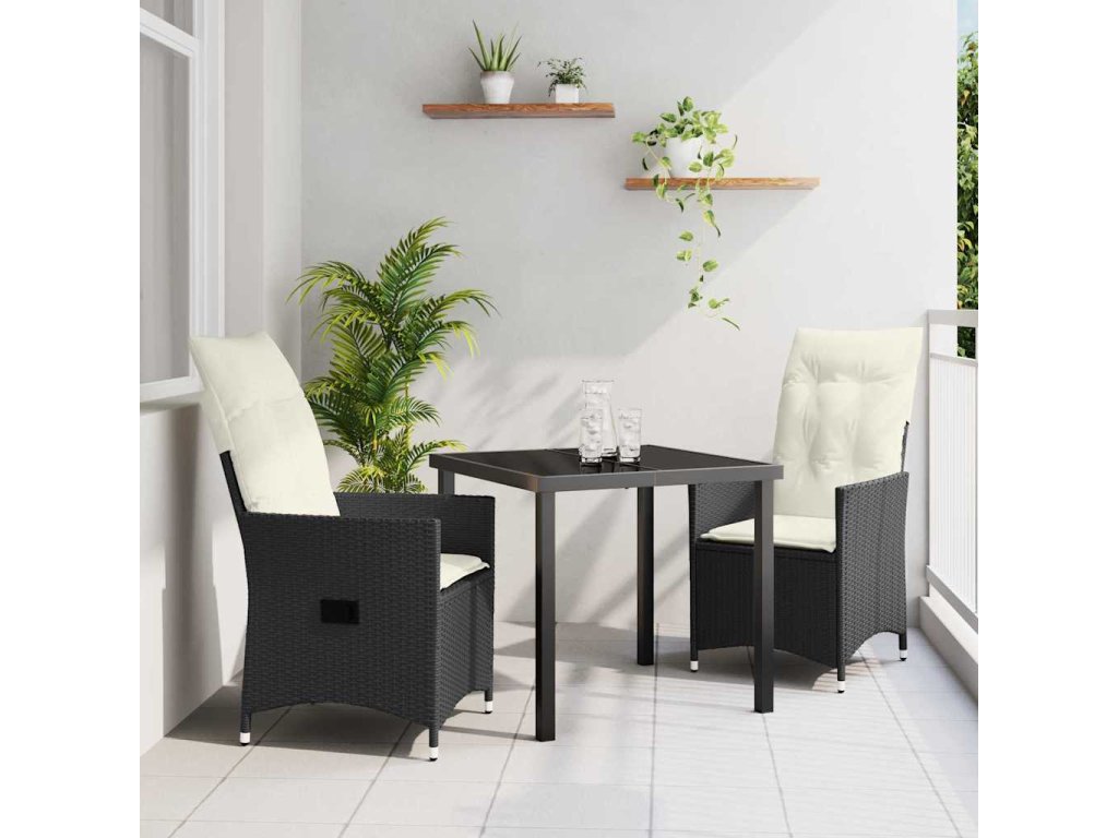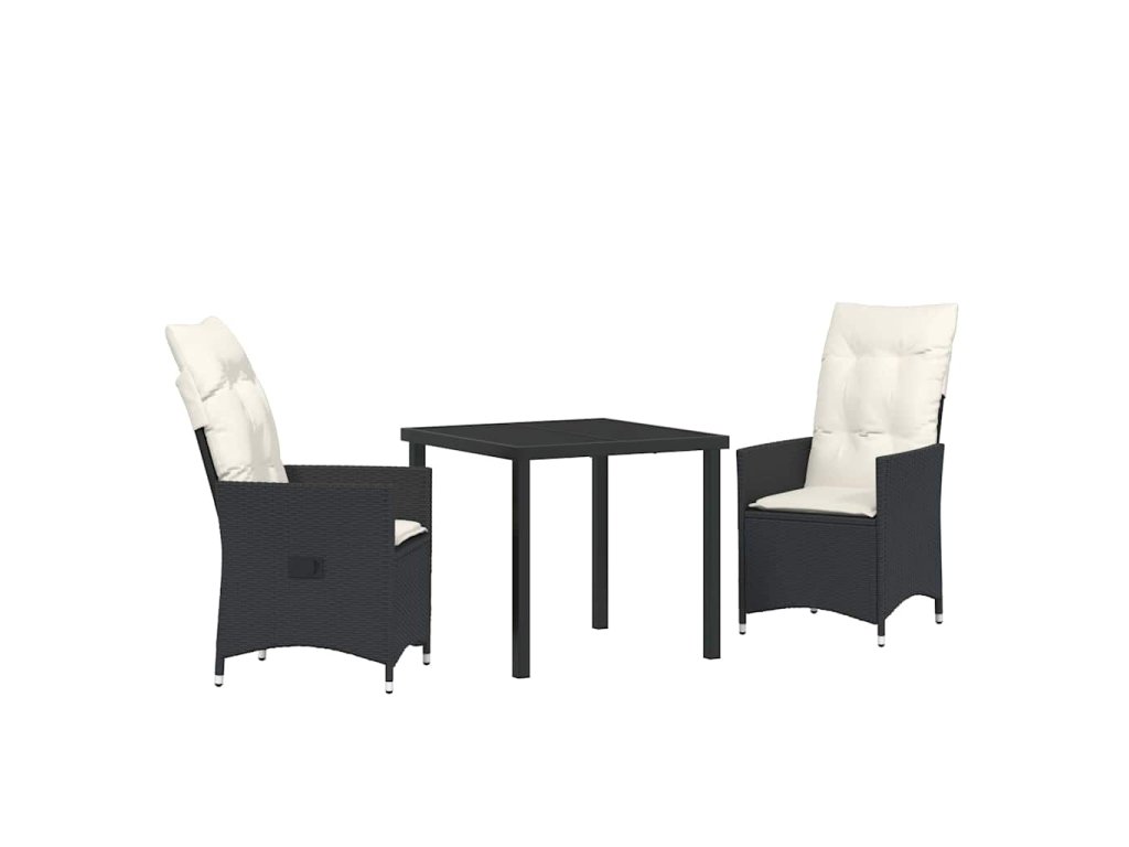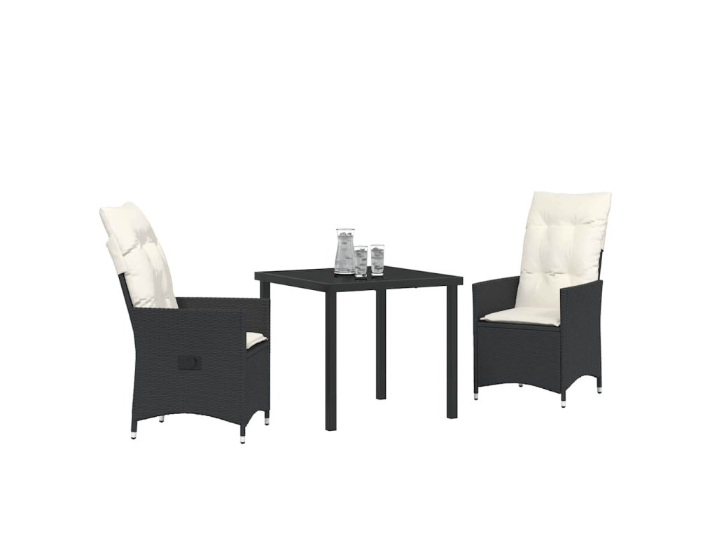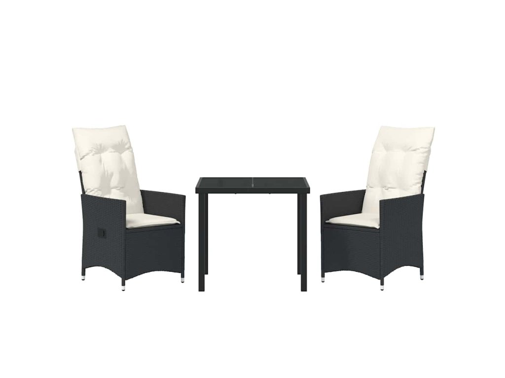 Zahradní jídelní souprava s polštářem 3 pcs Černá Poly ratan 3379534