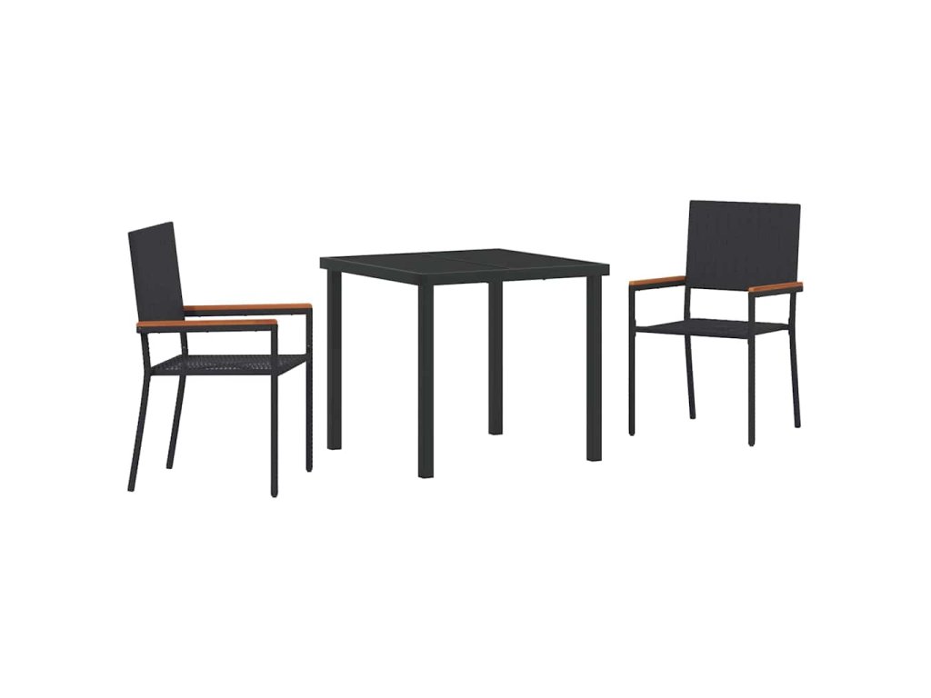 Zahradní jídelní souprava s polštářem 3 pcs Černá polyratan 3379702