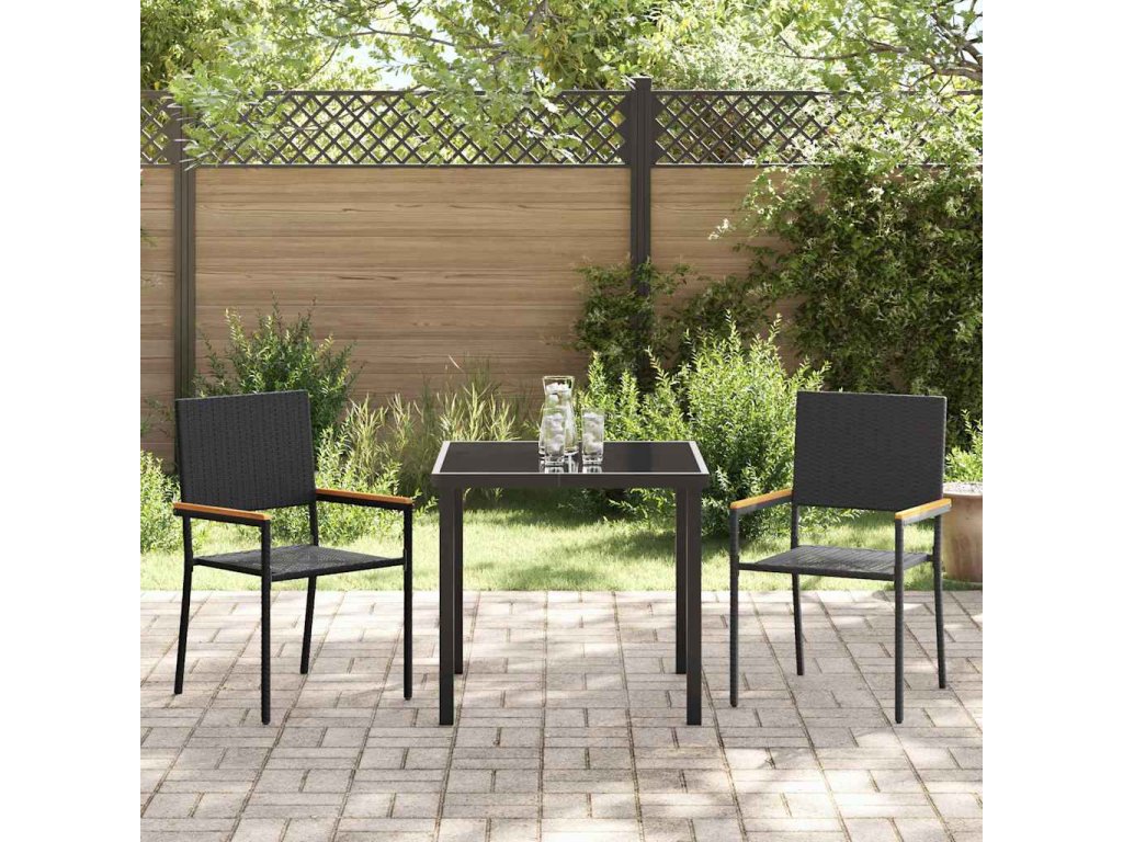 - Součásti: V setu jsou pohodlné židle, stůl se skleněnou deskou a pevné akáciové područky; všechno dohromady tvoří skvělý prostor pro venkovní jídlo.