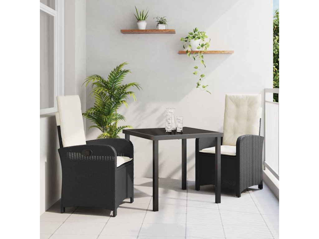 Zahradní jídelní souprava s polštářem 3 pcs Černá polyratan 3380253