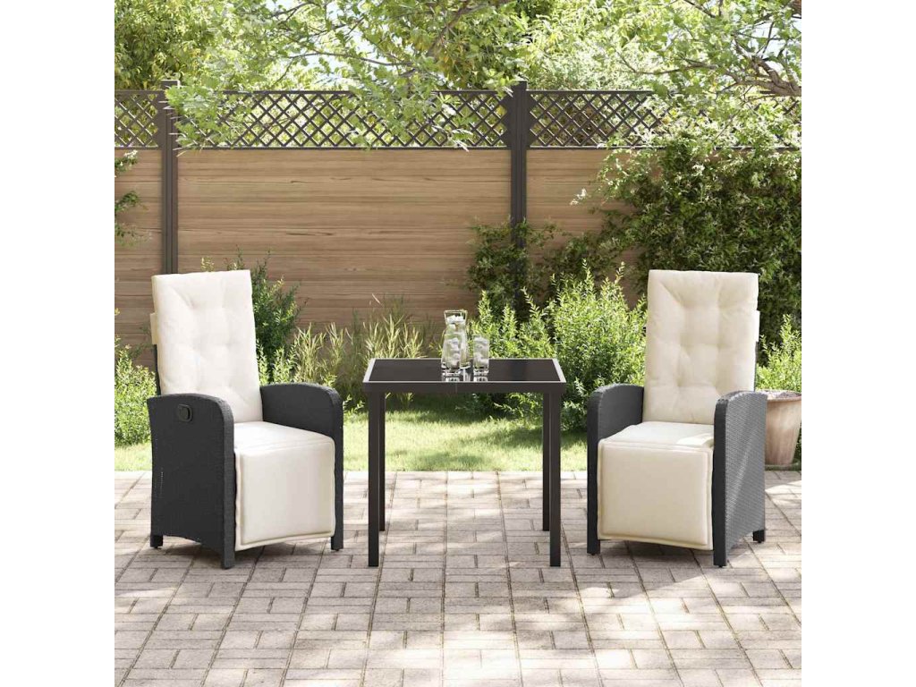 Zahradní jídelní souprava s polštářem 3 pcs Černá polyratan 3380302