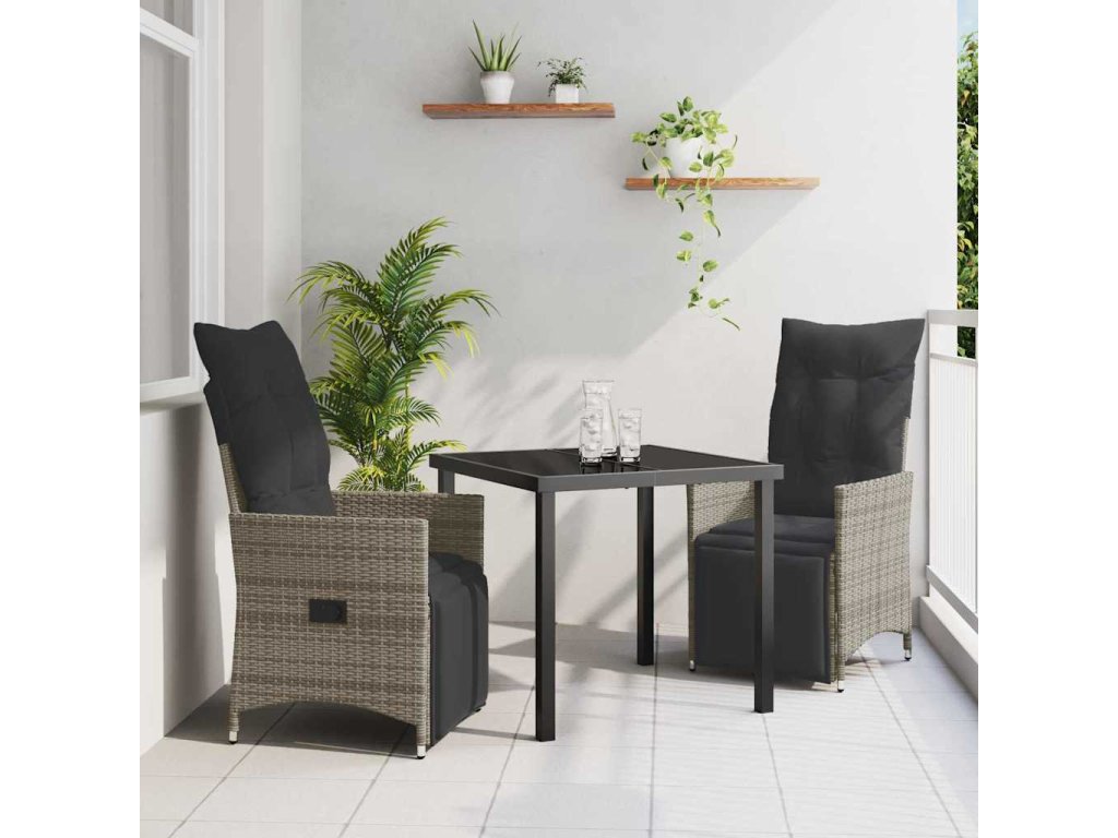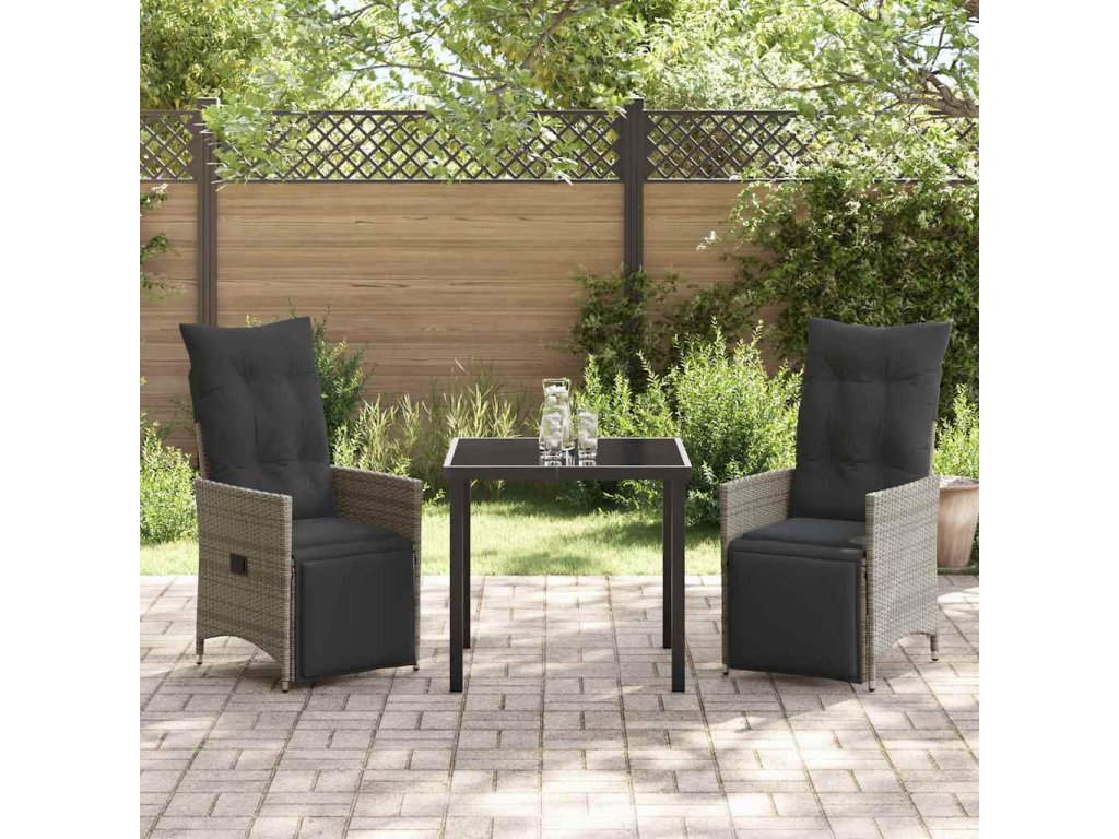Zahradní jídelní souprava s polštářem 3 pcs Šedá polyratan 3379576