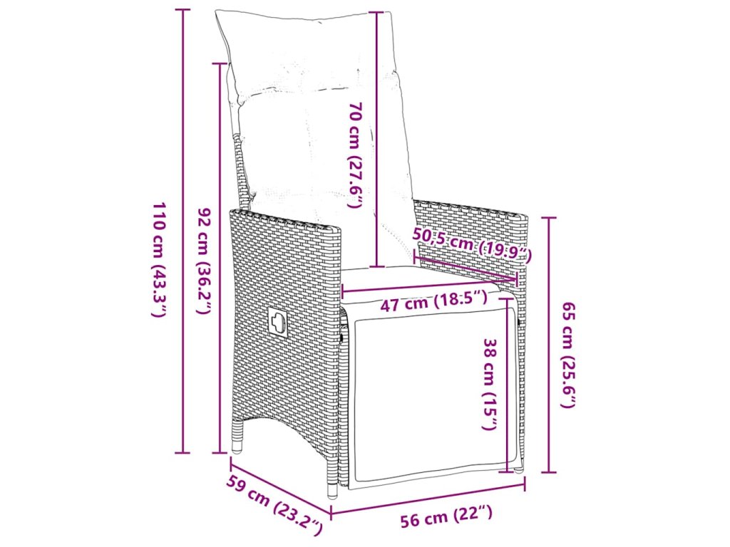 - Materiály z polyratanu Zahradní jídelní set je vyrobený z odolného polyratanu, který je UV stabilní a dlouho vydrží. Dlouho si zachovává skvělý vzhled, i za špatného počasí, takže je ideální pro venkovní použití. Textura a pocit polyratanu vytvářejí příjemnou atmosféru pro luxusní venkovní stolování.