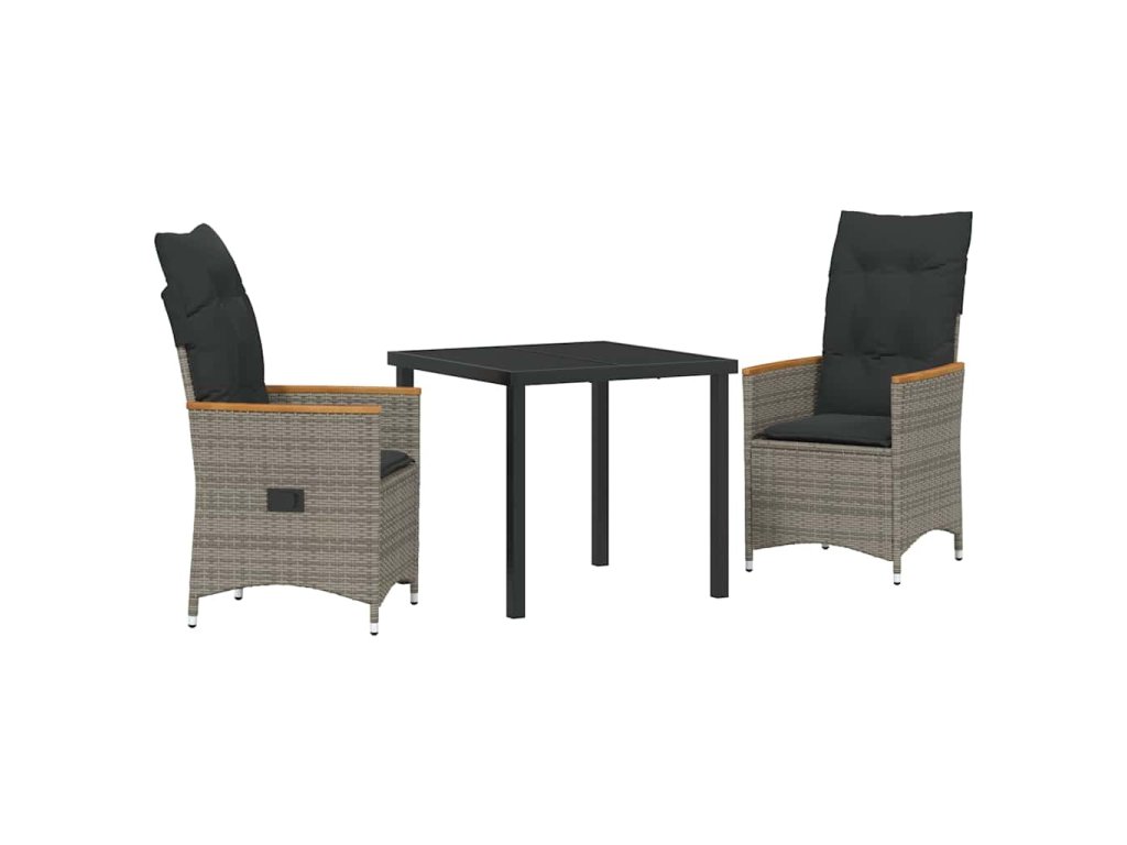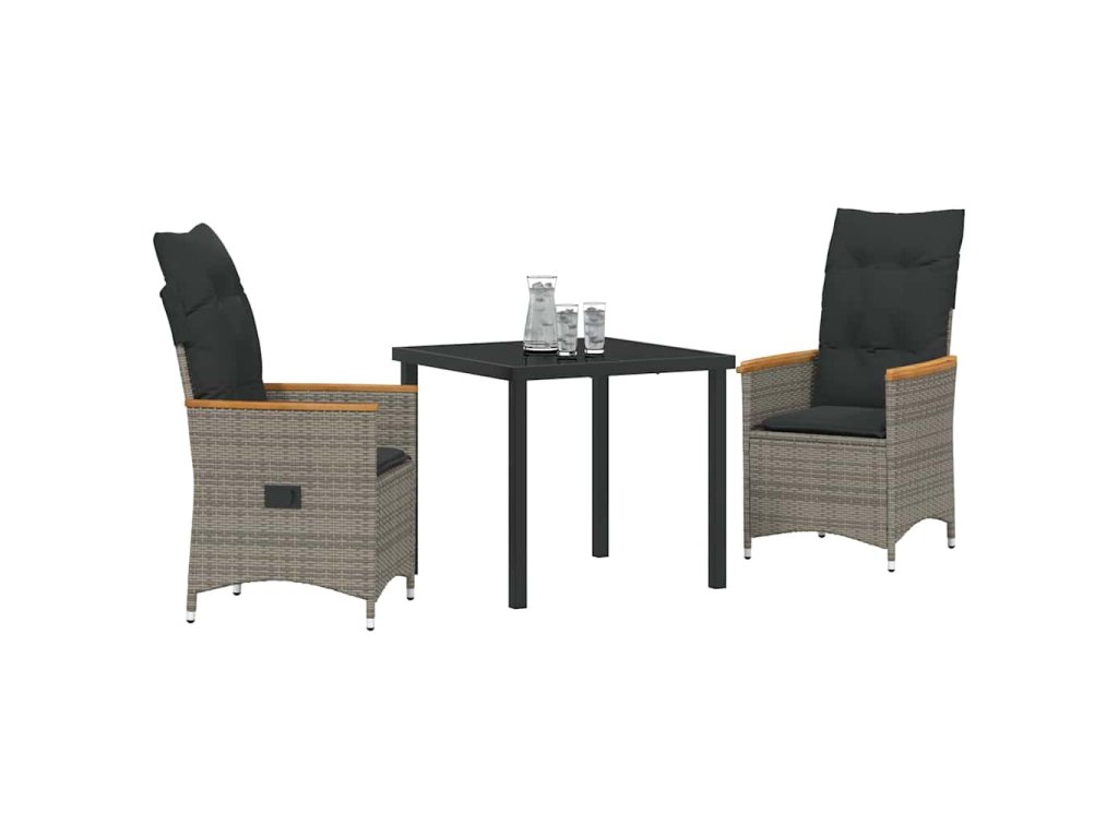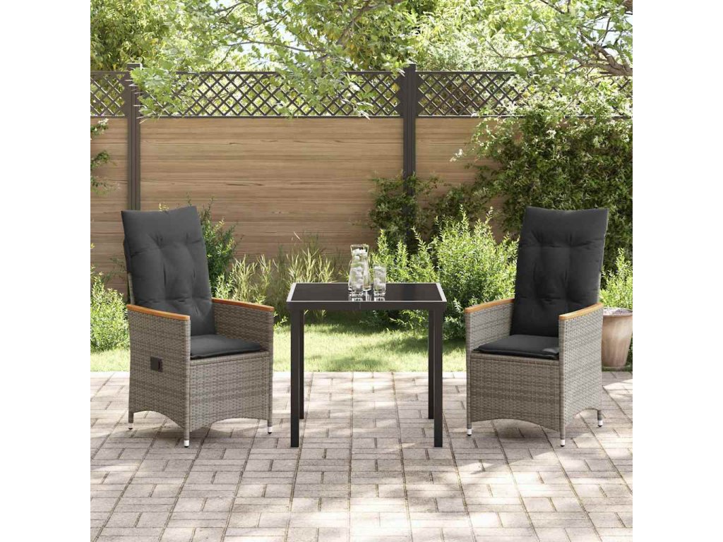 Zahradní jídelní souprava s polštářem 3 pcs Šedá polyratan 3379618