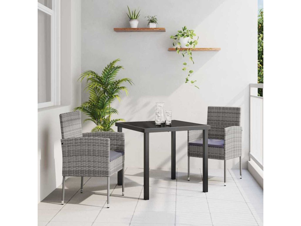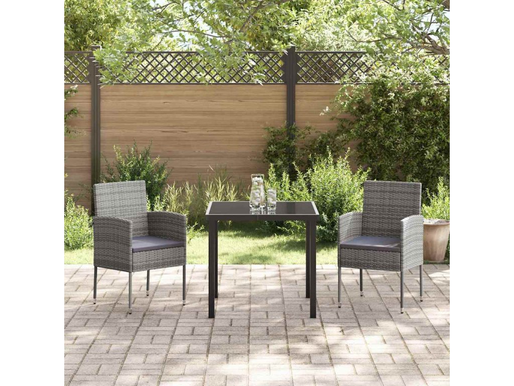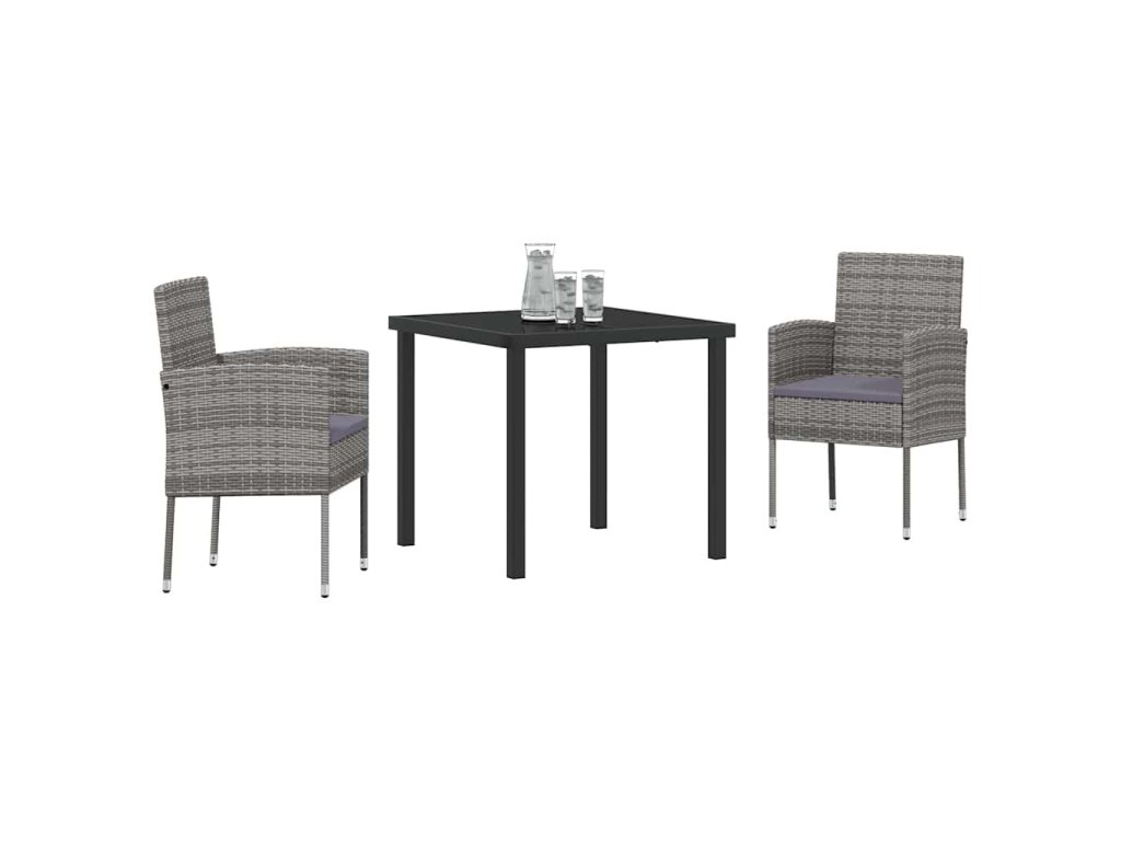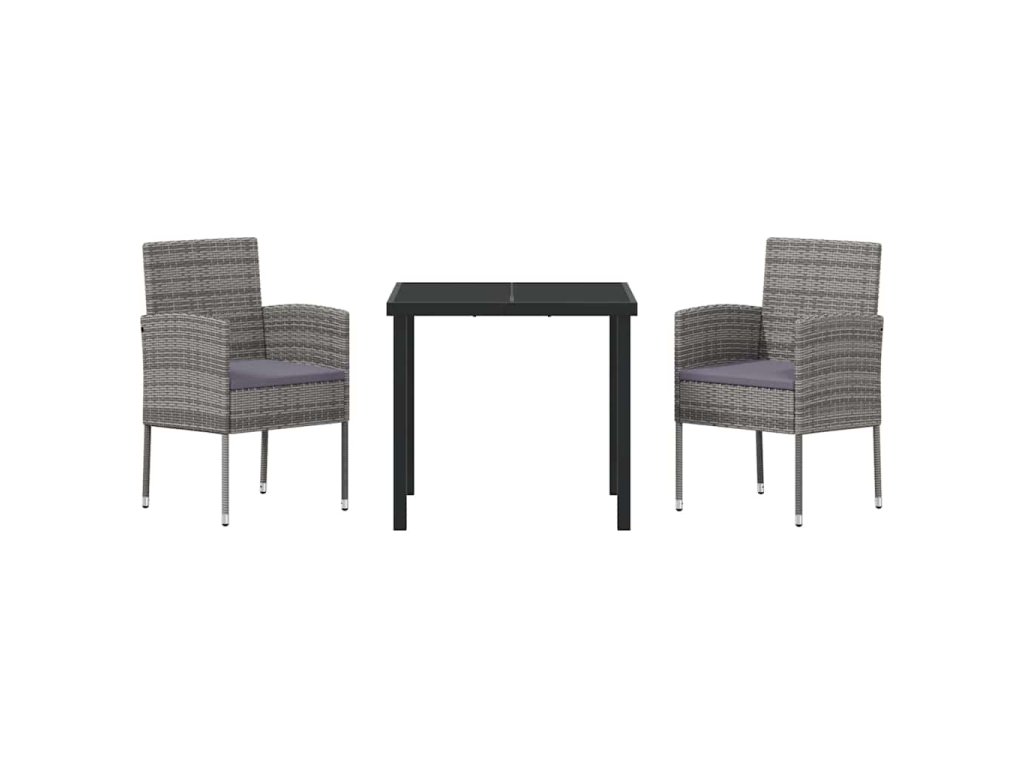 Zahradní jídelní souprava s polštářem 3 pcs Šedá polyratan 3380057