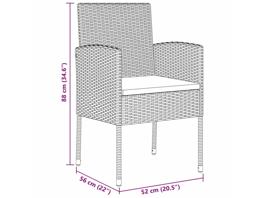 - 4 x zahradní židle: 52 x 56 x 88 cm (D x Š x V)