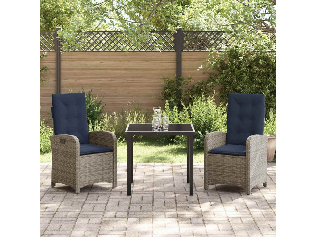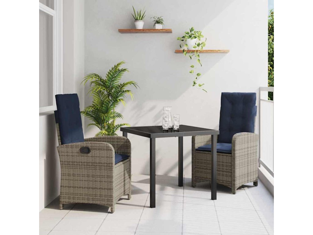 Zahradní jídelní souprava s polštářem 3 pcs Šedá polyratan 3380351