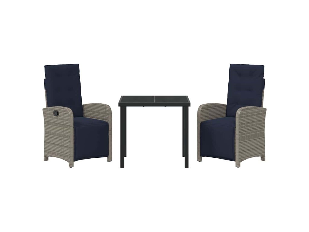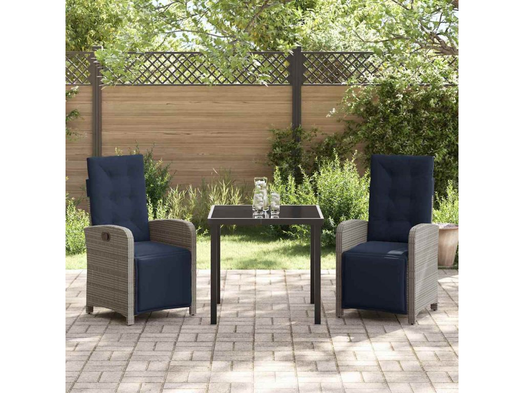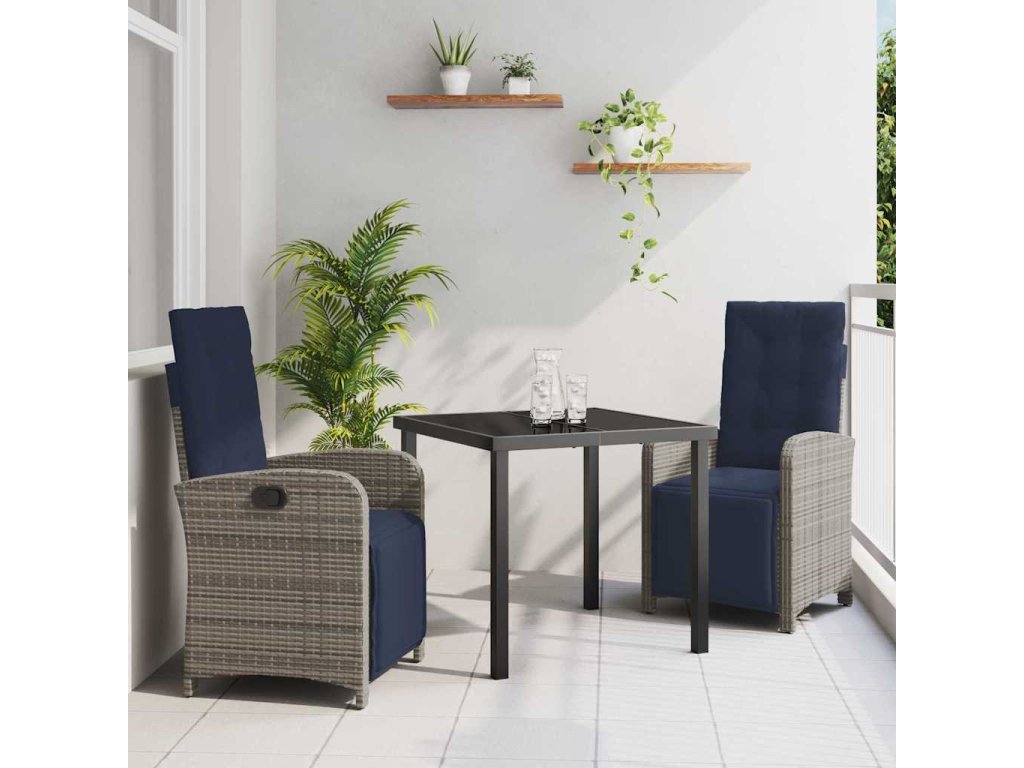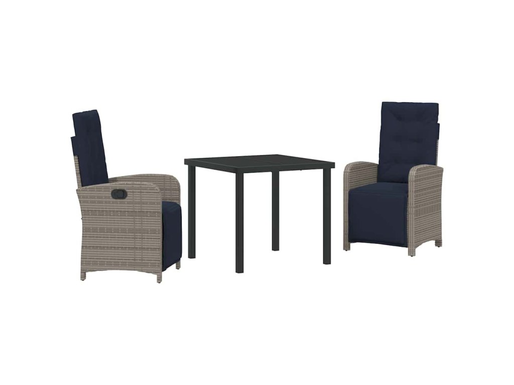 Zahradní jídelní souprava s polštářem 3 pcs Šedá polyratan 3380358