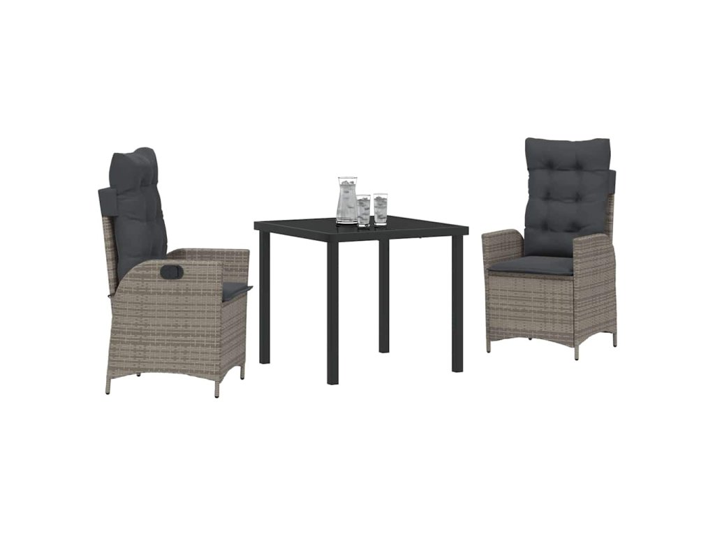 Zahradní jídelní souprava s polštářem 3 pcs Šedá polyratan 3380498
