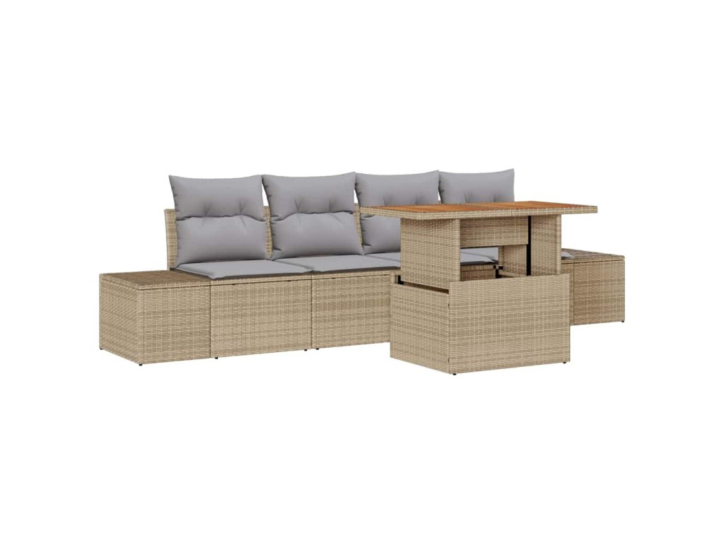 Zahradní jídelní souprava s polštářem 5 pcs Beige a šedá 3349895
