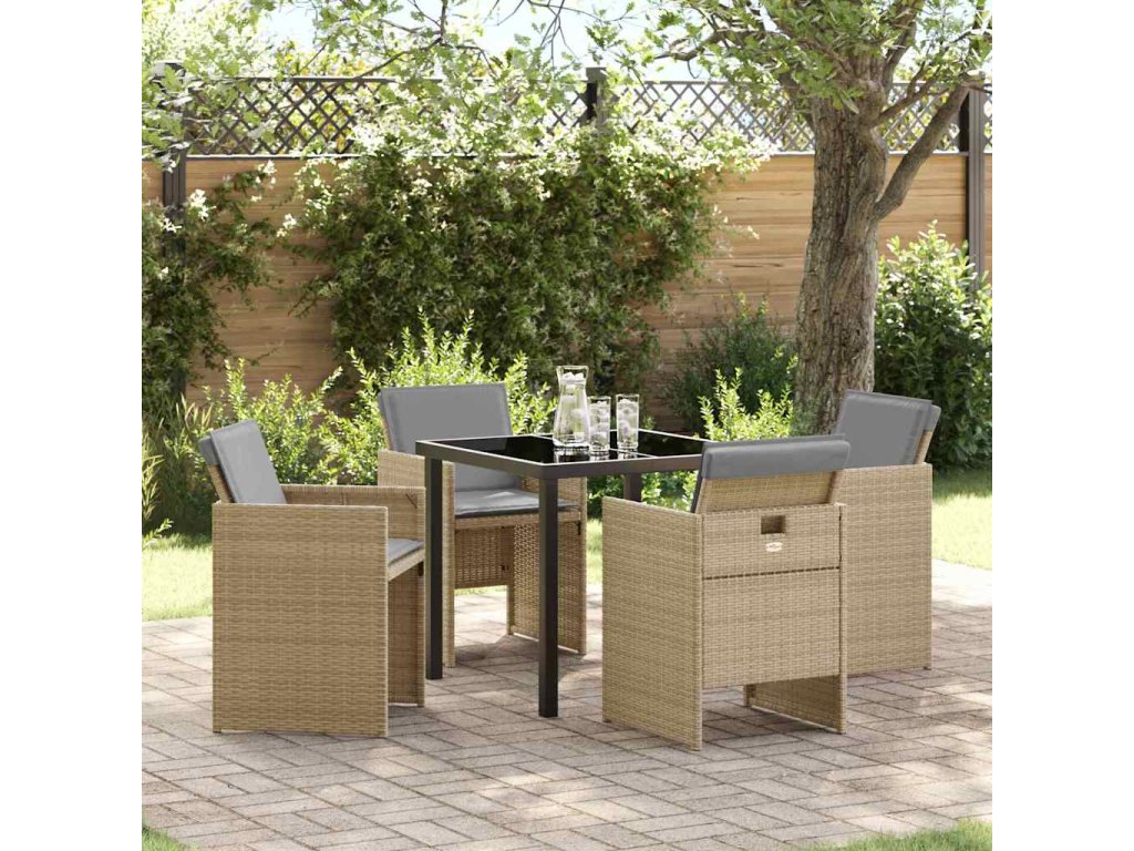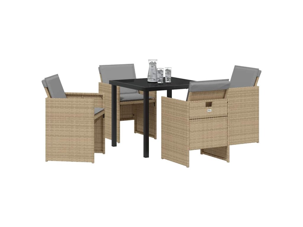Zahradní jídelní souprava s polštářem 5 pcs Béžová Poly ratan 3379964