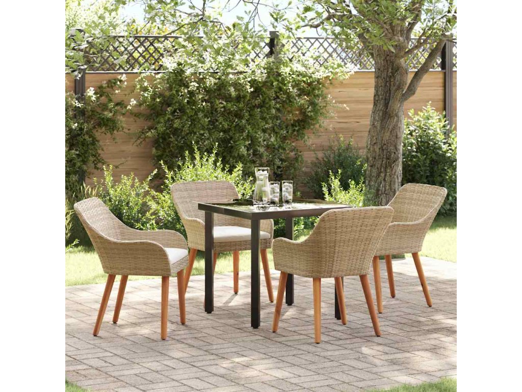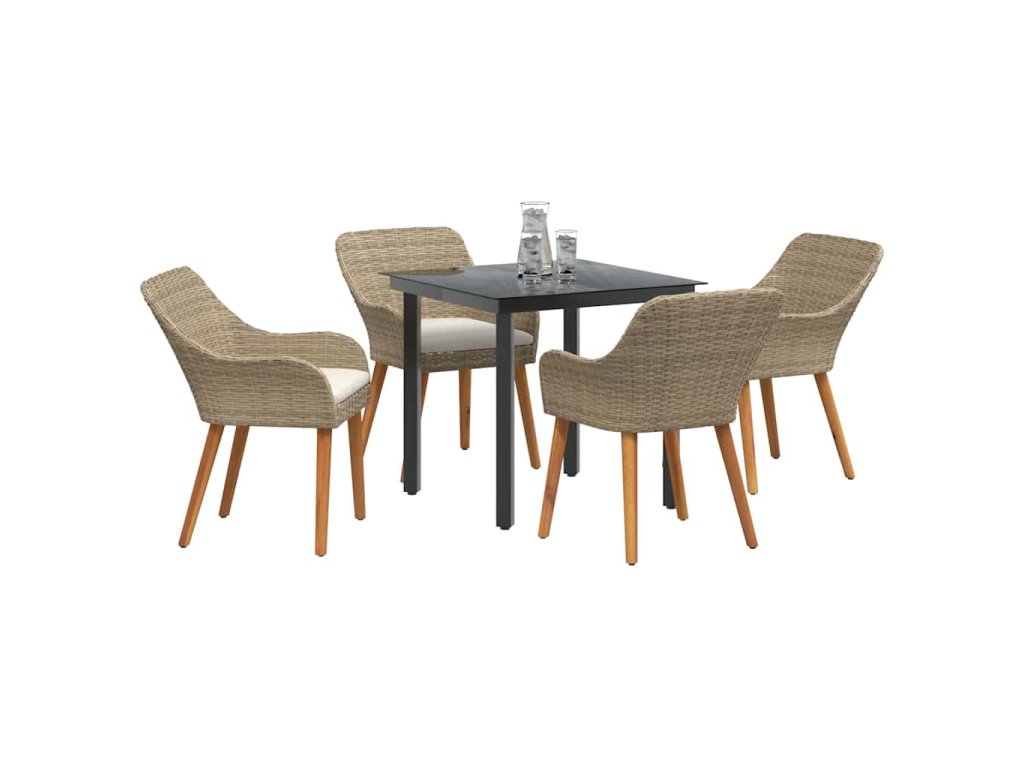 Zahradní jídelní souprava s polštářem 5 pcs Béžová polyratan 3261699