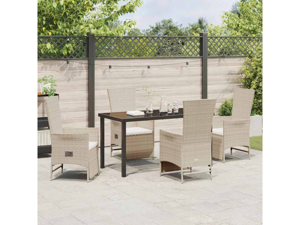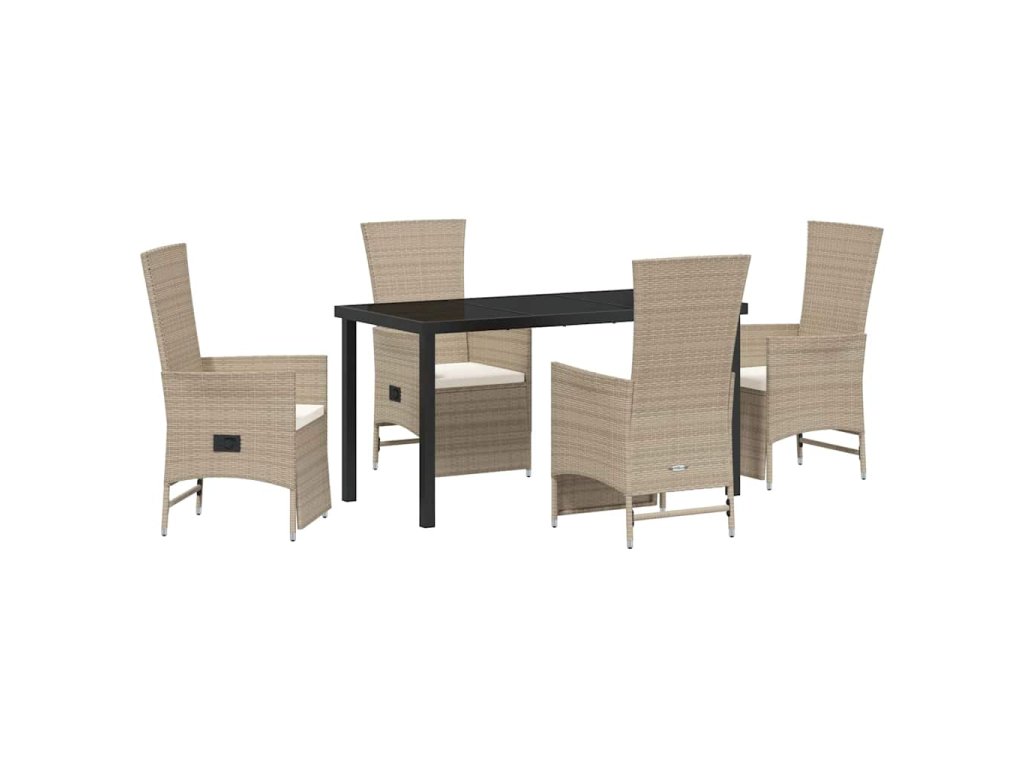Zahradní jídelní souprava s polštářem 5 pcs Béžová polyratan 3379473