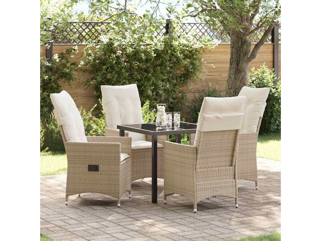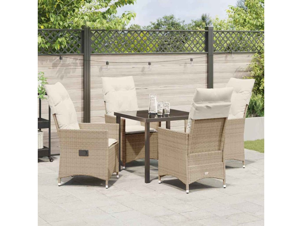 Zahradní jídelní souprava s polštářem 5 pcs Béžová polyratan 3379556