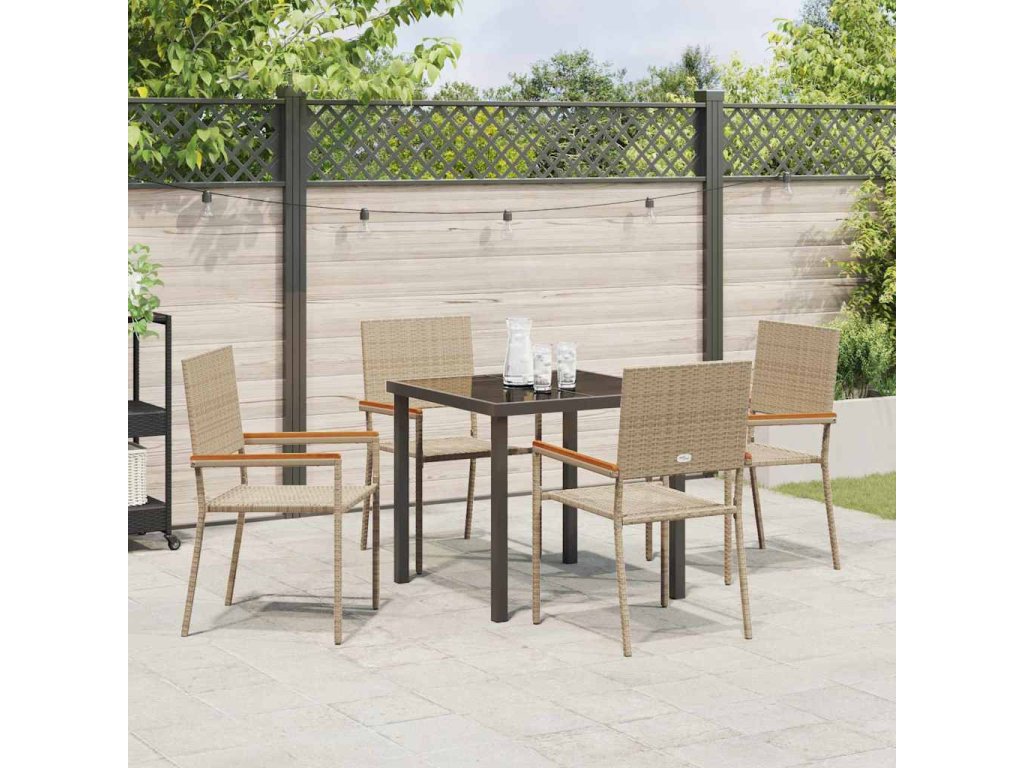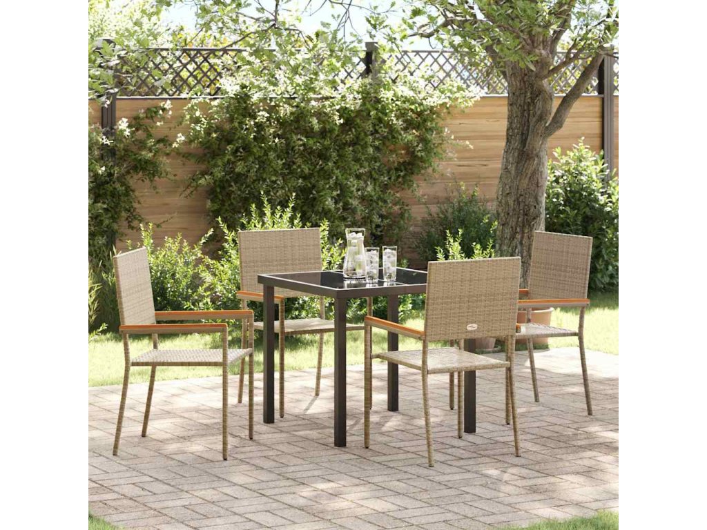 - Součásti: V setu jsou pohodlné židle, stůl se skleněnou deskou a pevné akáciové područky; všechno dohromady tvoří skvělý prostor pro venkovní jídlo.