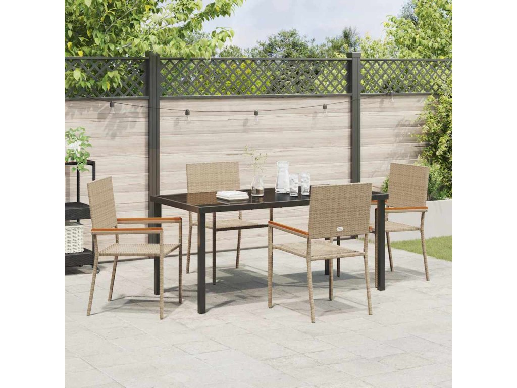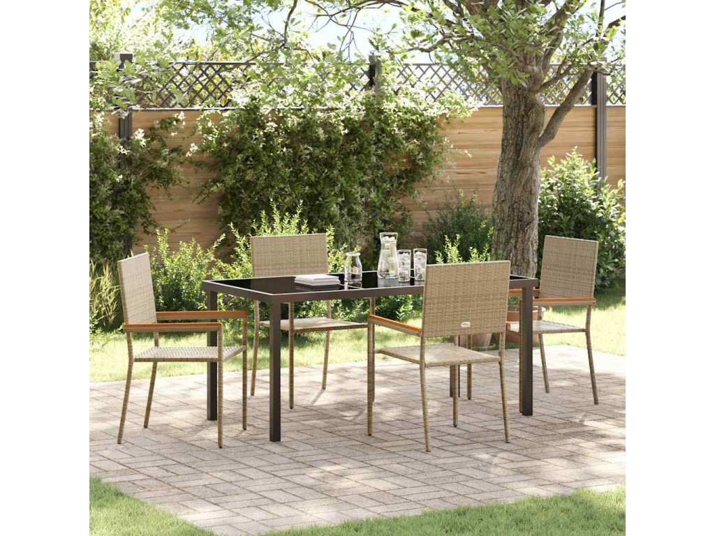 - Součásti: V setu jsou pohodlné židle, stůl se skleněnou deskou a pevné akáciové područky; všechno dohromady tvoří skvělý prostor pro venkovní jídlo.