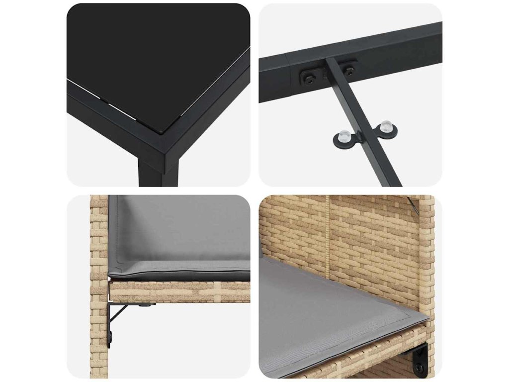 - Komfort se stylem: Pohodlné polštáře obohatí sezení pro příjemné odpoledne nebo večery. Jsou odolné vůči počasí a přidávají měkkost k robustní ratanové konstrukci.