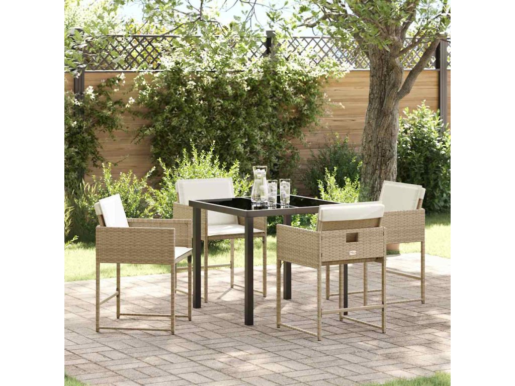 Zahradní jídelní souprava s polštářem 5 pcs Béžová polyratan 3380020